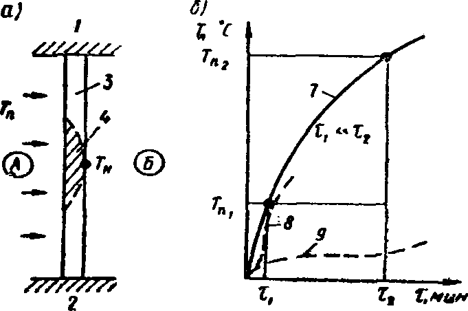 где произошел пожар, от времени; 1 - потолок (перекрытие);