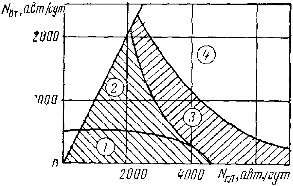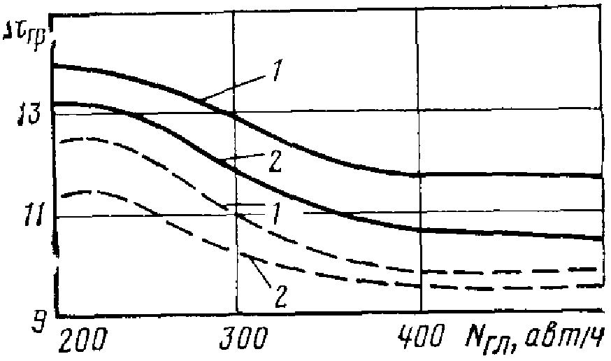 формуле (5.13) P = 0,82·0,86·0,66·0,95·1800 = 796 авт/ч.