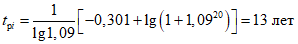 t - число лет до конца перспективы;