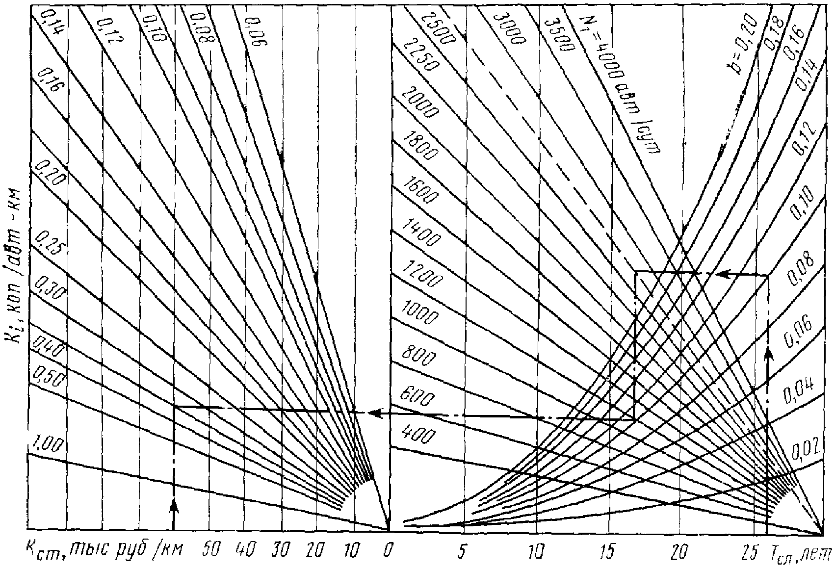 Рис. 1.1. Номограмма для определения перспективной