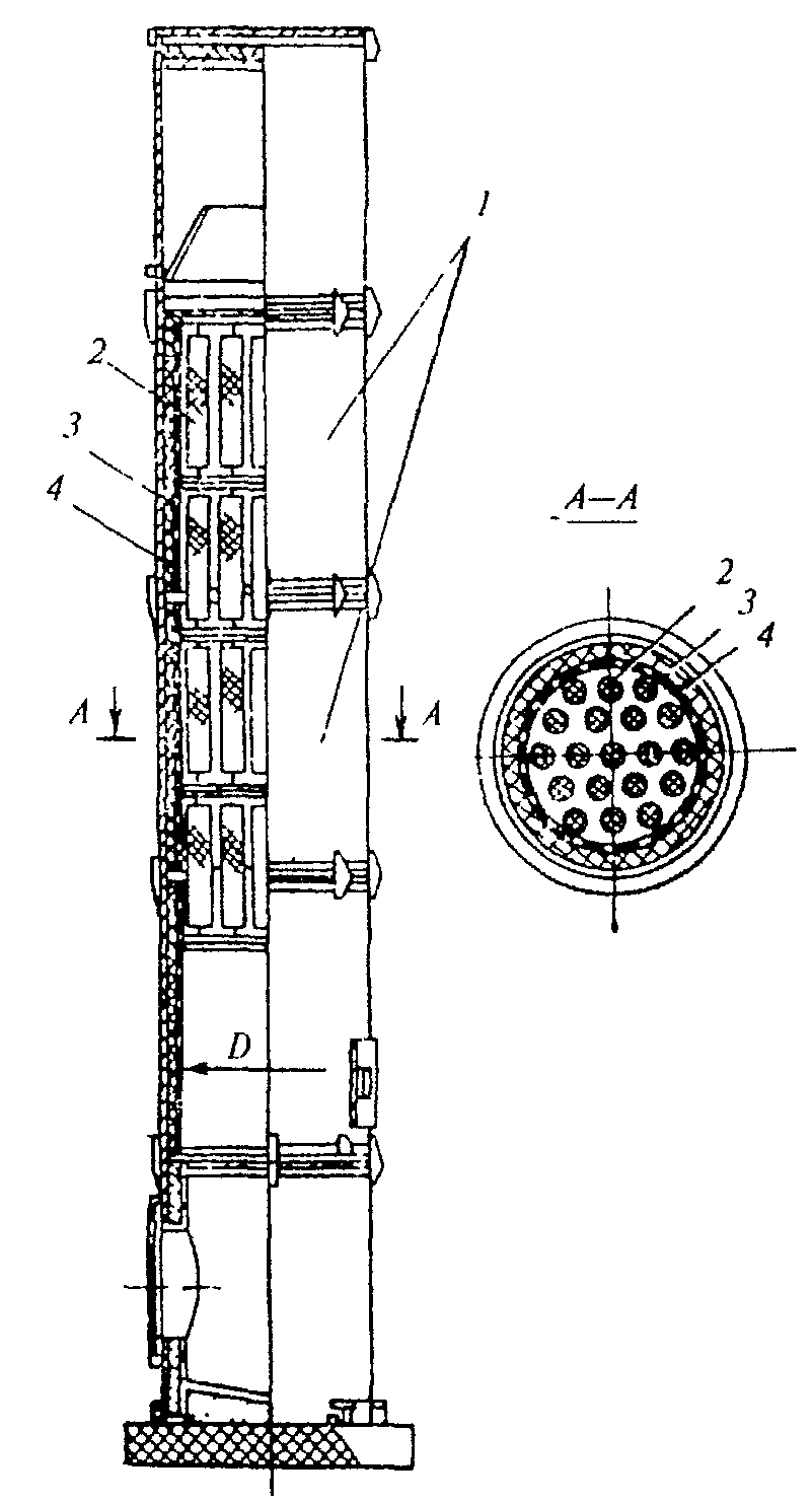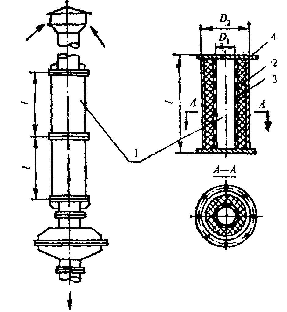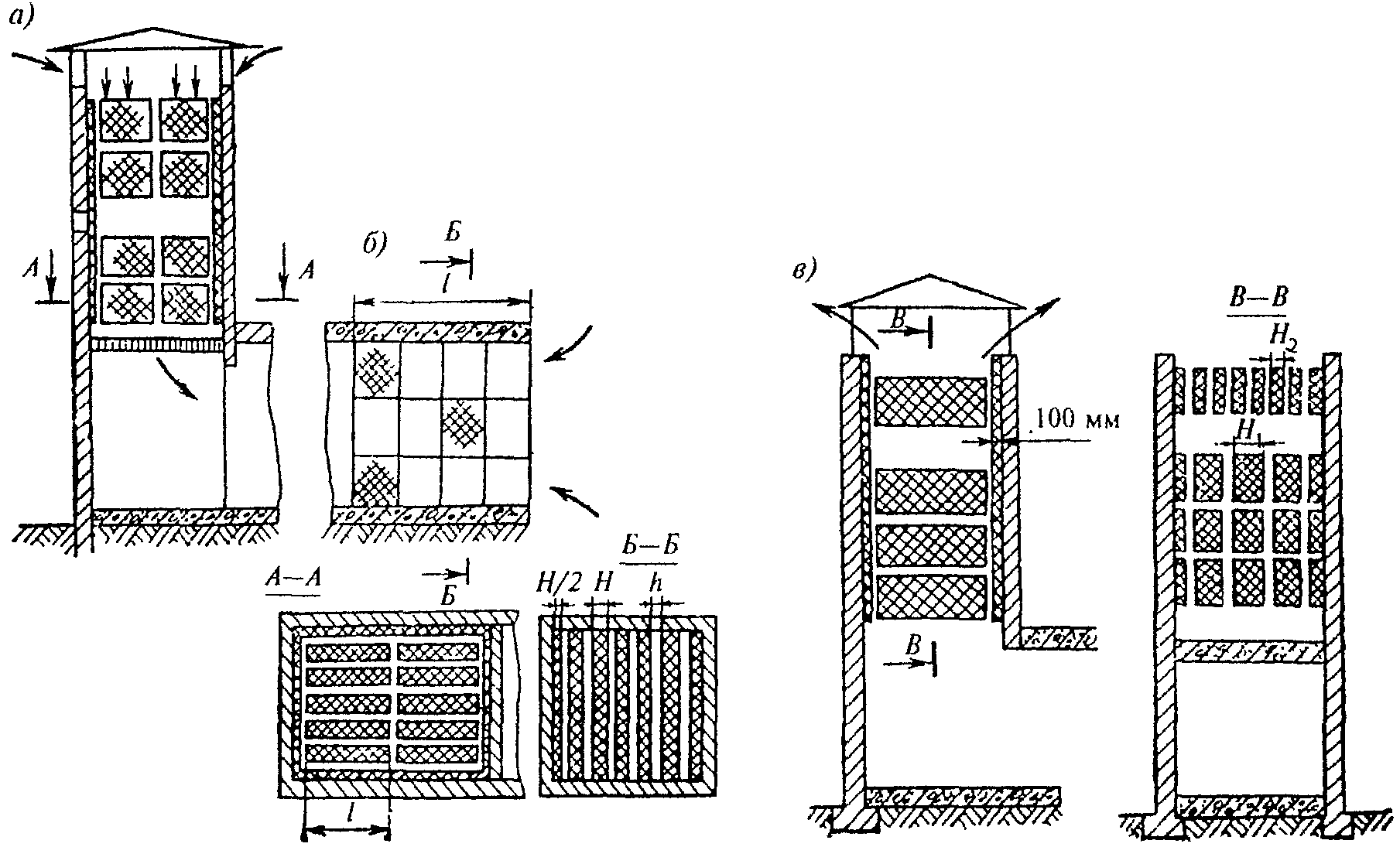 │ Примечание. Схема секционного вертикального глушителя шума с │