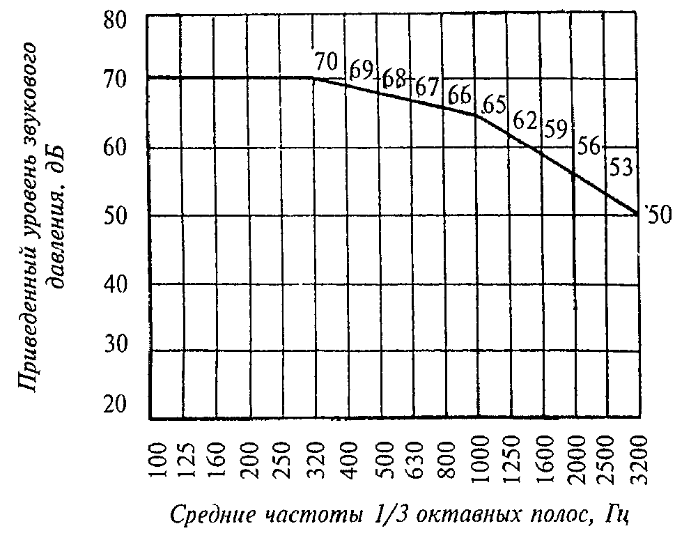 , дБ, в октавных полосах частот со среднегеометрическими частотами 63, 125, 250, 500, 1000, 2000, 4000 и 8000 Гц.