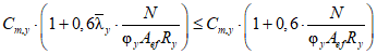 Примечание - Для балок с моментами на опорах C2yg = 0;  , где If,c и If,p - моменты инерции сжатых и растянутых полок относительно слабой оси y-y. Когда  , C1 должен быть разделен на 1,05, но быть не менее 1,0. |