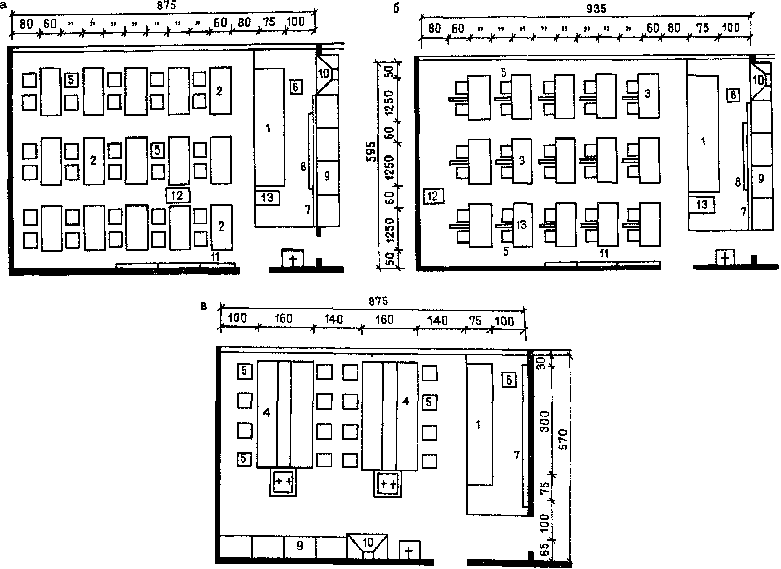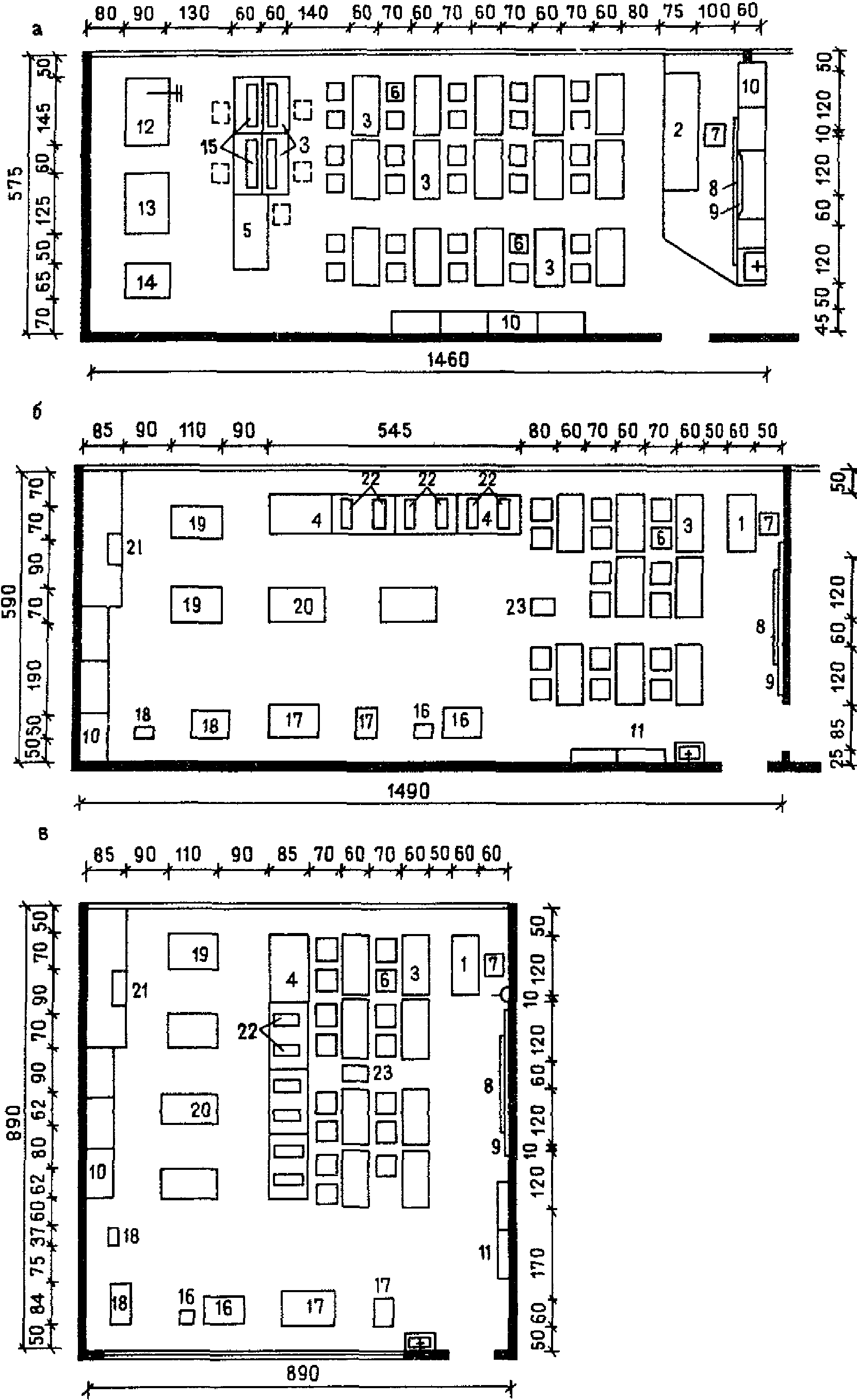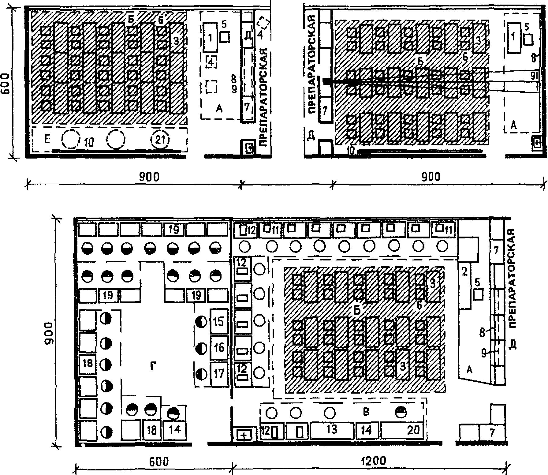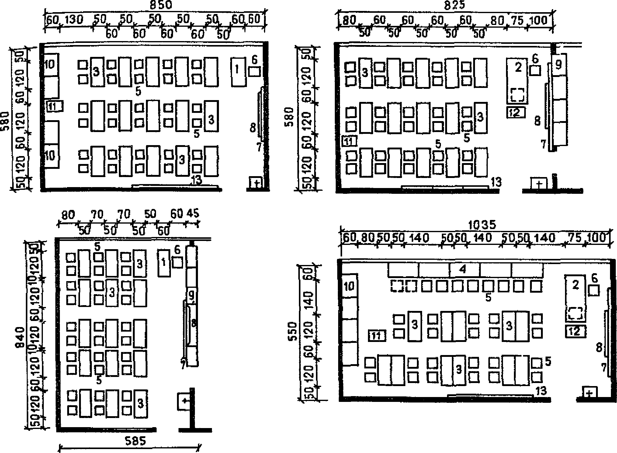При модернизации здания, основанной на его перепланировке, необходимо перераспределение существующего состава помещений в соответствии с современными требованиями, размещении недостающих кабинетов общеобразовательного цикла на площадях избыточных кабинетов спецтехнологии, размещении препараторских за счет уменьшения габаритов лабораторий, переоборудовании части площадей зальных помещений (актового зала, столовой) для размещения комнат воспитательно-досугового назначения. При перепланировке учебных корпусов желательно по возможности сохранять предусмотренное проектом размещение помещений, требующих специальных инженерных коммуникаций: кабинеты и лаборатории профессионально-технического цикла (в техникумах - специального и общетехнического цикла) - лаборатории физики, химии и биологии.