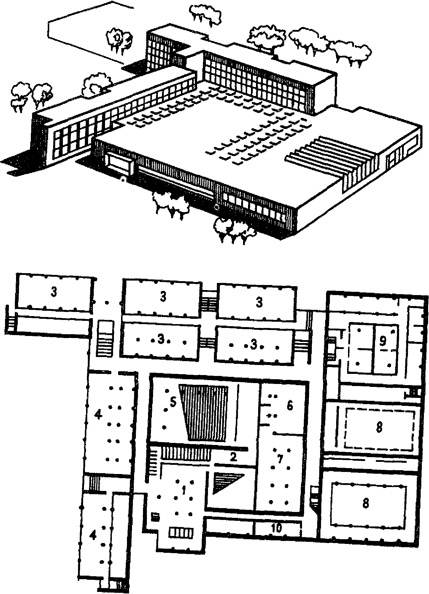 С помощью указанных блоков-пристроек могут быть реконструированы учебные корпуса всех ПТУ, построенных по типовым проектам, и общественно-бытовые корпуса профтехучилищ небольшой вместимости.