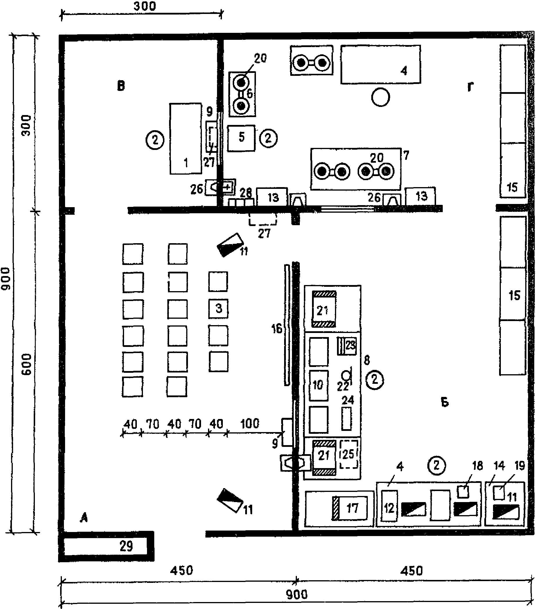 преподавателя и контроля за учащимися │высокий уровень освещенности