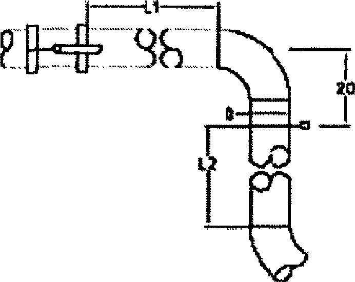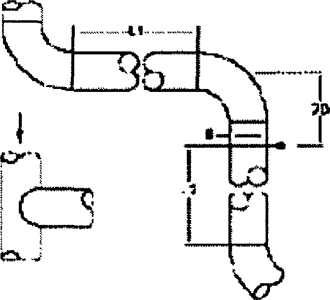 Г.2. Наименьшая длина прямых участков ИТ между трубкой "ANNUBAR 485" и ближайшими местными сопротивлениями для специального режима расположения ANNUBAR на расстоянии 2D после изгиба в 90° (от центральной оси ИТ перед изгибом) приведена в таблице Г.2.