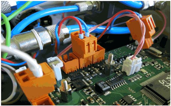 - вынуть вилки питания воздушного компрессора и клапана из гнезда на внутренней плате уровнемера PS-LIGHT-II, как показано на рисунке 2.