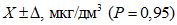 │ │ X, мкг/дм3 │отклонение │воспроизводимости)│ погрешности) │ +/- Дельта, │
