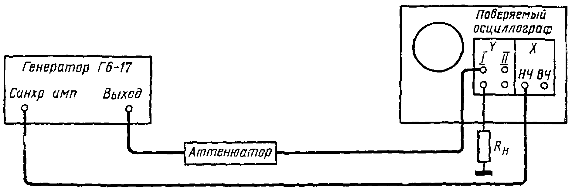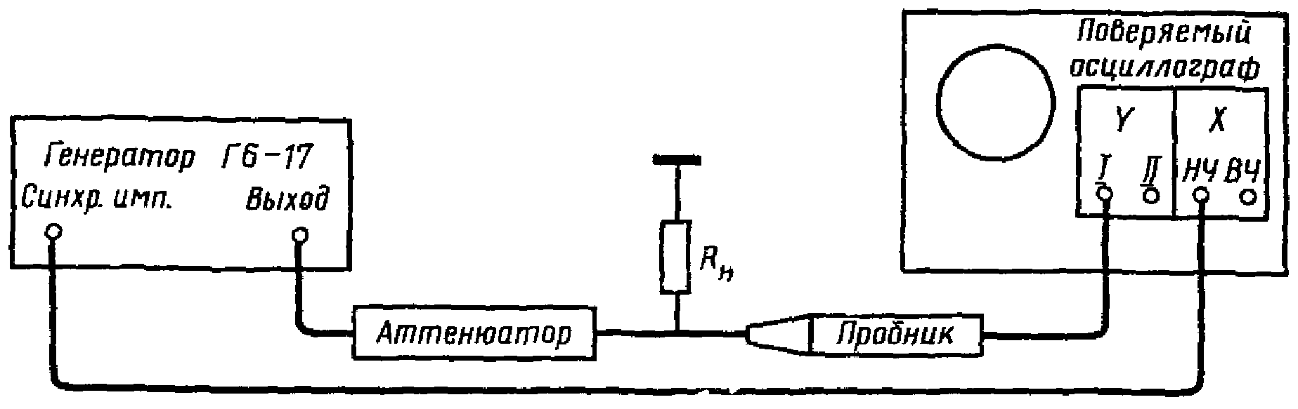 рис. 4, б. В этом случае испытательный сигнал подают на вход Y тракта одного из каналов осциллографа, а согласующую нагрузку из комплекта прибора включают на выходе подключенного канала. Для низкоомного согласованного входа стробоскопического осциллографа с нагрузкой внутри прибора собирают схему