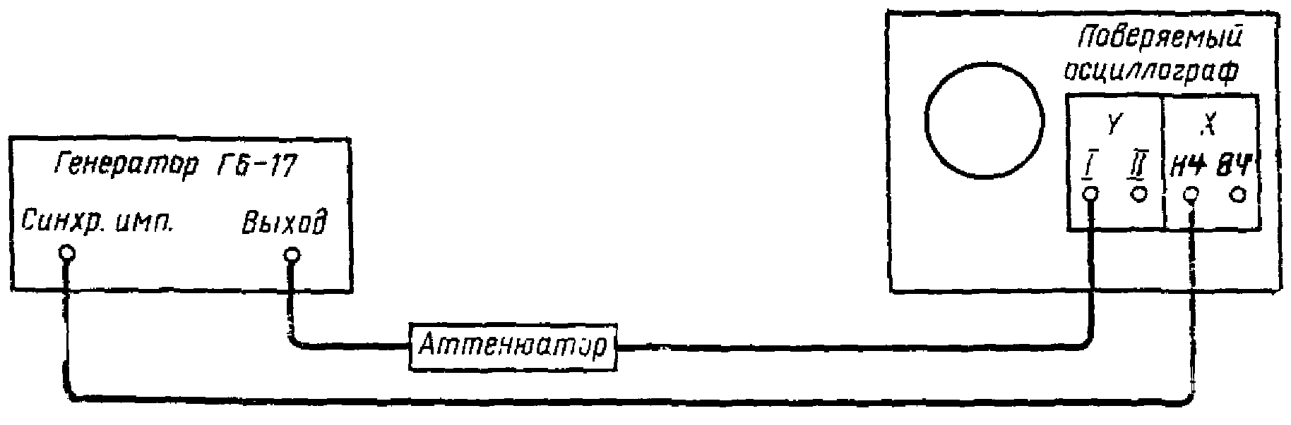 В диапазоне частот, превышающих предельную частоту синхронизации поверяемого осциллографа, сигнал синхронизации подать через синхронизатор Я4С-20.