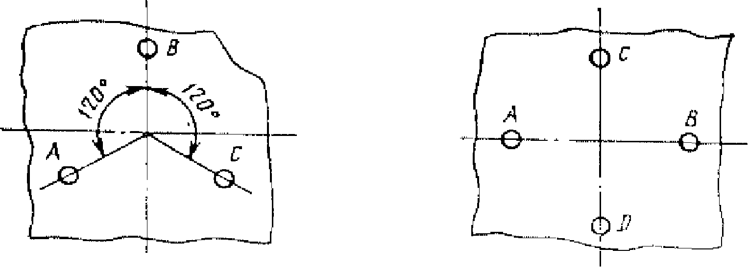 Приложение 1. Примеры размещения приемных преобразователей |A, B, C, D, E, F, A1, ..., An, B1, ..., Bn, C1, ..., Cn, D1, ..., Dn| на объектах некоторых типов
