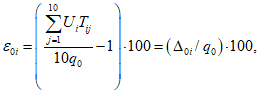 Ui последовательно измеряются длительности десяти интервалов времени между импульсами. Относительное значение систематической составляющей основной погрешности, %, вычисляют по формуле