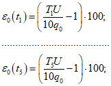 3.4.1. Пять раз с интервалом в один час измерить суммарные длительности десяти периодов следования импульсов T1, T2, T3, T4, T5, контролируя при этом входной сигнал. Значения систематической составляющей основной погрешности прибора, %, для различных моментов времени его работы вычисляют по формулам