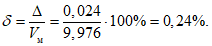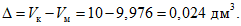 где c = 0,008 дм3 - цена деления шкалы ДТ мерника номинальной вместимостью 10 дм3;