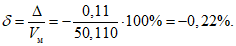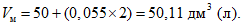 где c = 0,055 дм3 - цена деления шкалы "Б" мерника номинальной вместимостью 50 дм3;