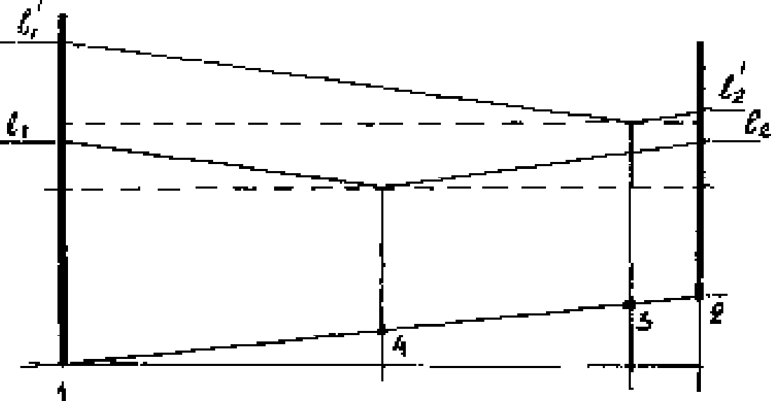 (рис. Б) располагают примерно в 50 м по обе стороны от станции I. Со станций прокладывают два замкнутых нивелирных хода, нивелируя точки в последовательности 1 - 2 - 3 - 4 - 1. Суммируя длины ходов, получают один ход длиной около 1 км.