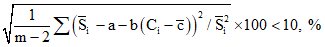 - соответственно, измеренное, заданное и среднее значения концентраций.