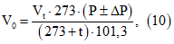 - объем газа, отобранный для анализа и приведенный к нормальным условиям (температура 0 °C и давление 101,3 кПа), дм3,
