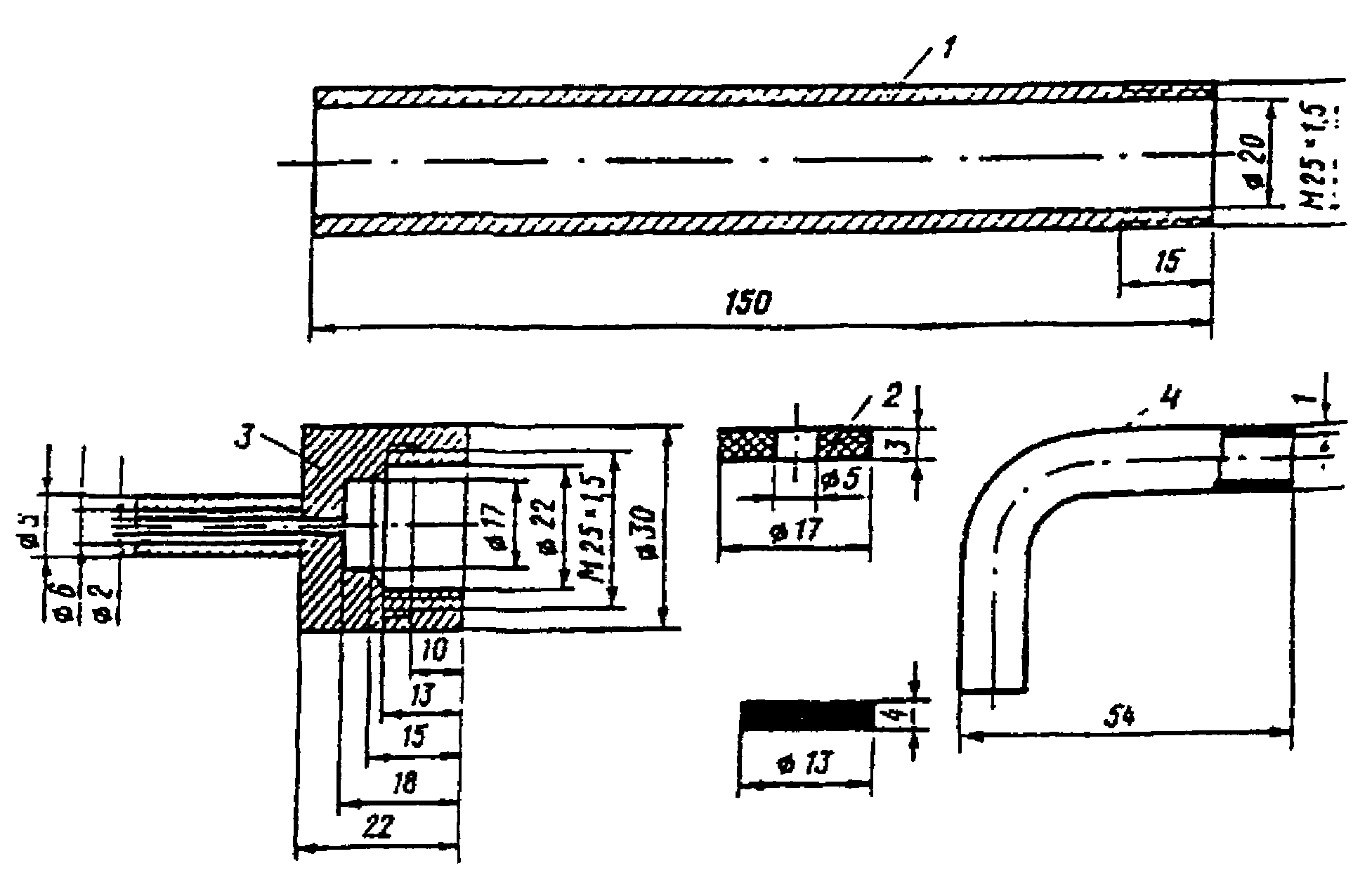 1 - пробоотборник; 2 - пробка; 3 - склянка Дрекселя;
