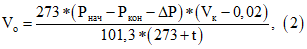 - объем газовой пробы, приведенной к нормальным условиям, дм3.