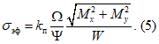 Продольное напряжение от изгибающего момента и осевой силы, МПа (кгс/кв. см) | |