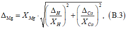 - погрешность установления молярной концентрации КВЭ магния в растворе, ммоль/см3;