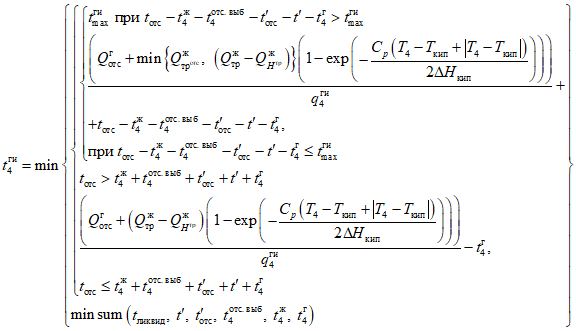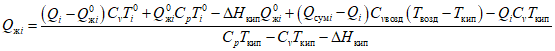 для расчета интенсивности кипения пролива решается H-P задача определения состояния системы при заданных значениях энтальпии (энергии) и давлении, при этом энергия полагается равной сумме исходной внутренней энергии и энергии, подводимой от подстилающей поверхности, давление полагается равным атмосферному, исходный состав полагается равным составу жидкой фазы, проливающемуся на поверхность в начальный момент времени;