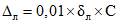 где | | - | относительная погрешность измерений массовой концентрации (объемной доли) определяемого компонента в воздухе рабочей зоны (промышленных выбросах) по таблице 2, %. |