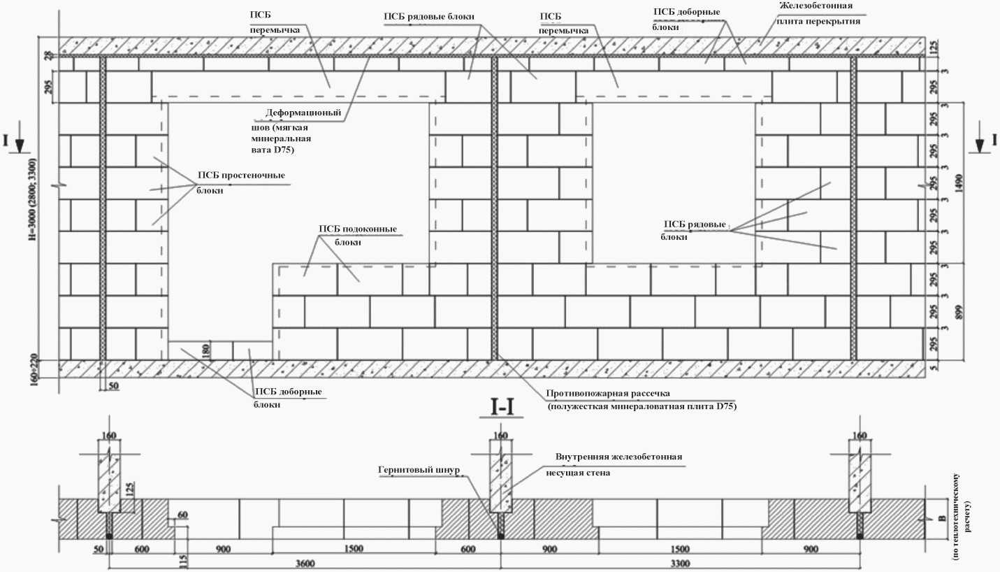 Примечания 1 В скобках указаны размеры изделий, выпускаемые производителем по ее согласованию с проектной или строительной организацией. 2 В приведенную номенклатуру ПСБ изделий не включены блоки повышенной заводской готовности с цементно-песчаной облицовкой. |