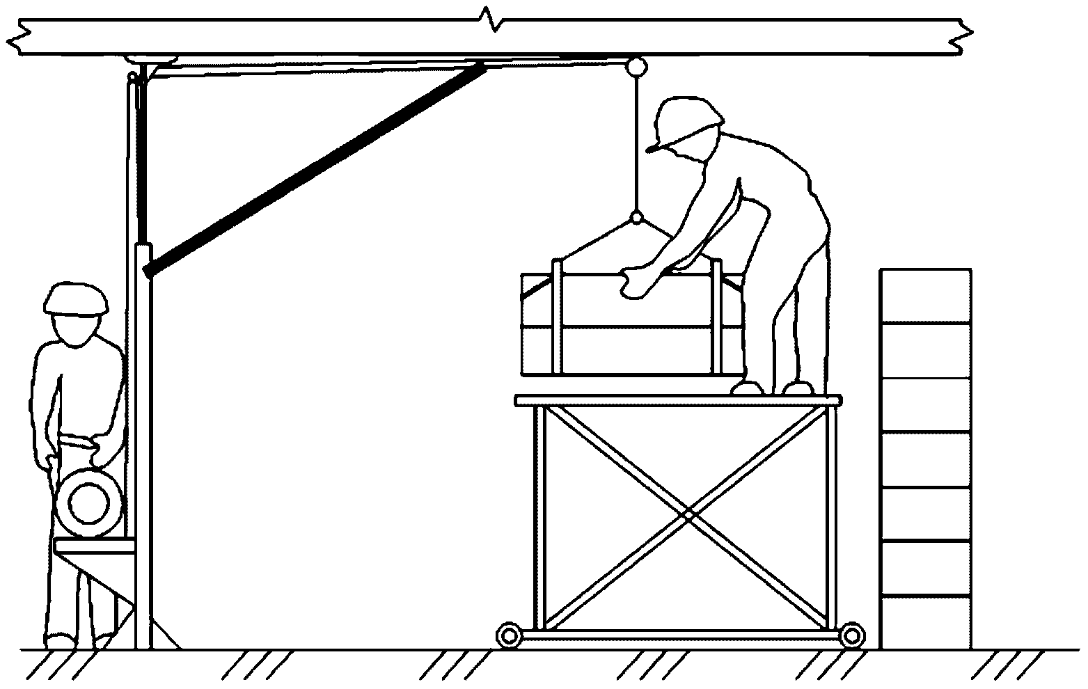 9.7 Высоту каждого яруса кладки из полистиролбетонных блоков устанавливают с таким расчетом, чтобы уровень кладки после каждого перемещения был не менее чем на один ряд блоков выше уровня подмостей. Кладку полистиролбетонных блоков и перемычек следует вести только с перекрытий, подмостей или фасадных подъемников. При возведении стен находиться на них людям не допускается.