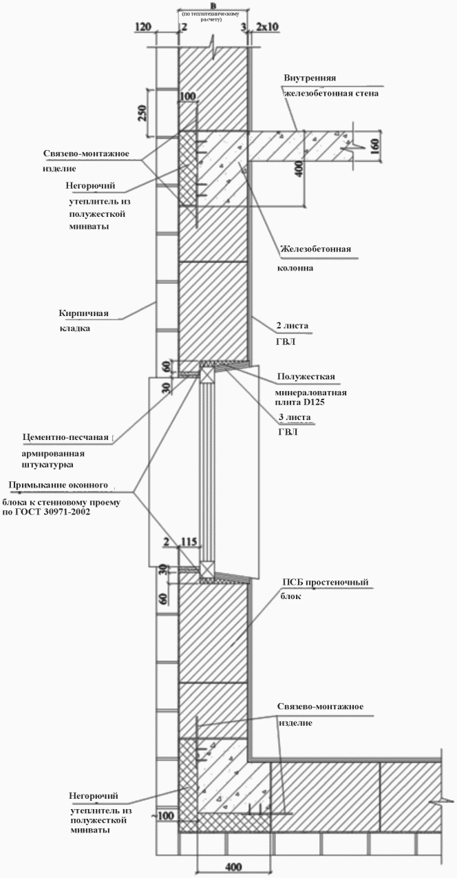 3.9 облицовочные слои: Наружные (из штукатурки, кирпичной кладки, базальтовых мат или плит, декоративных фасадных плит) или внутренние (из штукатурки или ГВЛ) конструктивные слои наружных стен (с основным утепляющим слоем из ПСБ изделий), выполняющих огнезащитные, теплоизолирующие, а также (со стороны фасада) архитектурные функции.