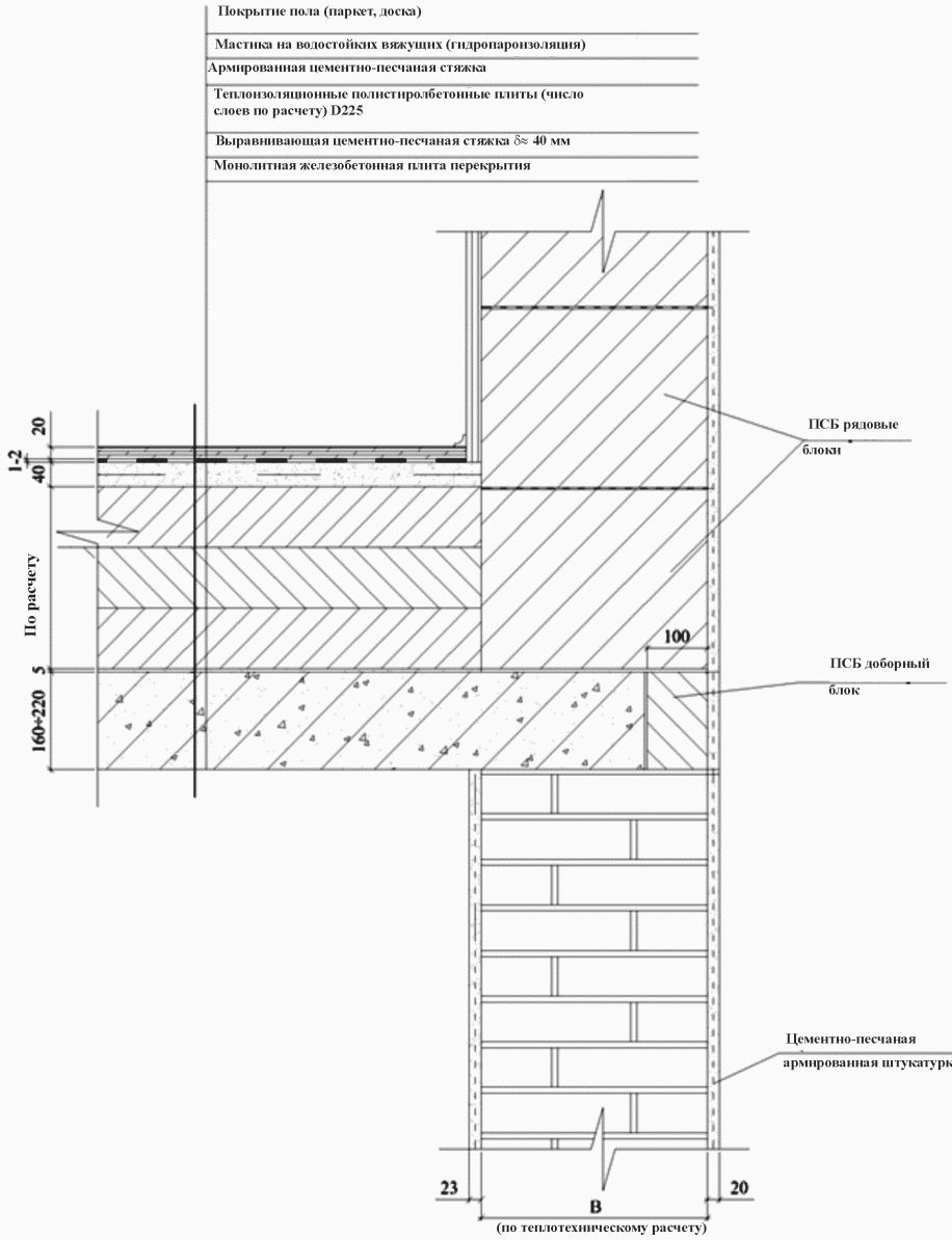 3.8 ограждающие конструкции с применением полистиролбетонных изделий: Ненесущие или несущие наружные стены зданий, включающие кладку из полистиролбетонных блоков и перемычек, и покрытия и перекрытия (чердачные, над холодными подвалами, подпольями, проездами), утепляемые полистиролбетонными плитами, в совокупности образующие теплосберегающую оболочку здания.