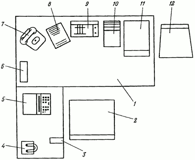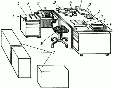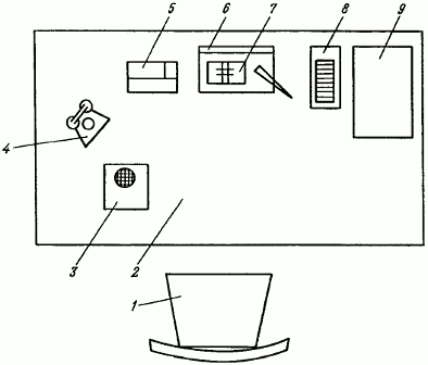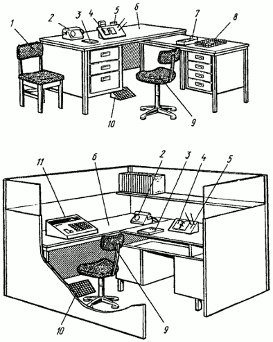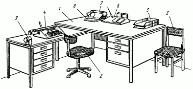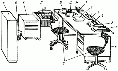 При организации рабочих мест руководителей, специалистов и служащих автотранспортных предприятий рекомендуется руководствоваться типовыми рабочими местами или схемами организации рабочих мест, приведенными на