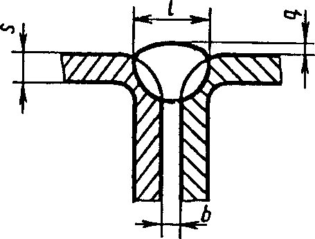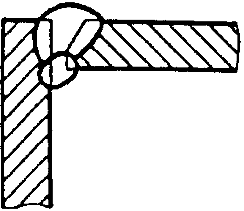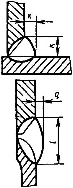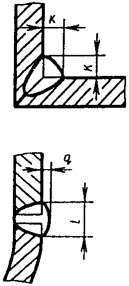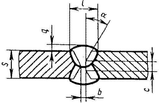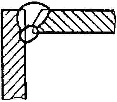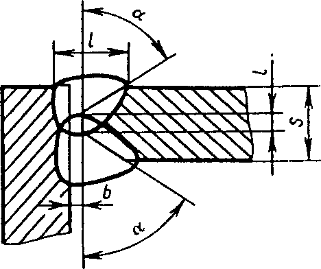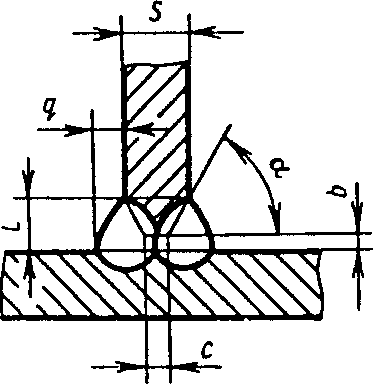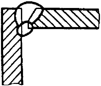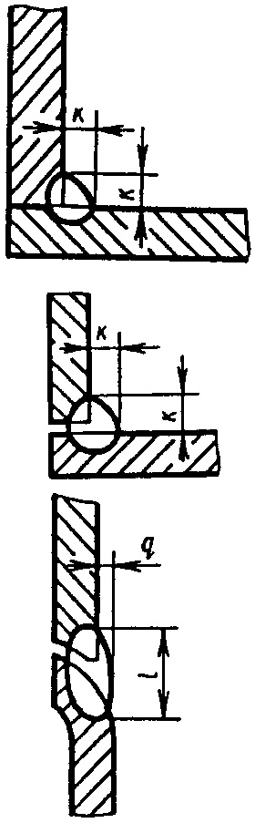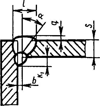У5 | Угловых соединений без скоса кромок двусторонние | ![]() | F = S · b + 0,75 l q - основной шов - подварочный шов - основной шов - подварочный шов |