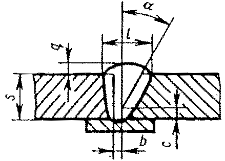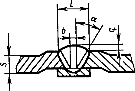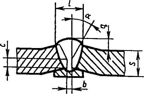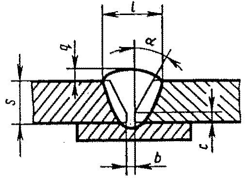 С5 | Стыковых соединений без скоса кромок односторонние на остающейся подкладке | ![]() | F = S · b + 0,75 l q | |