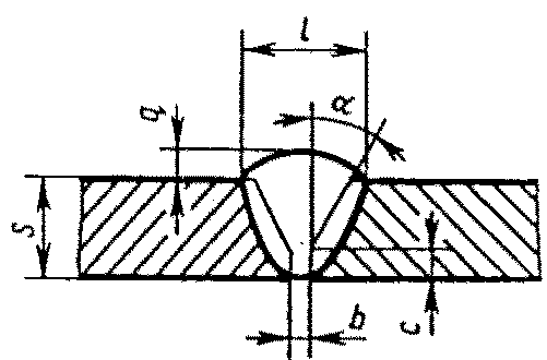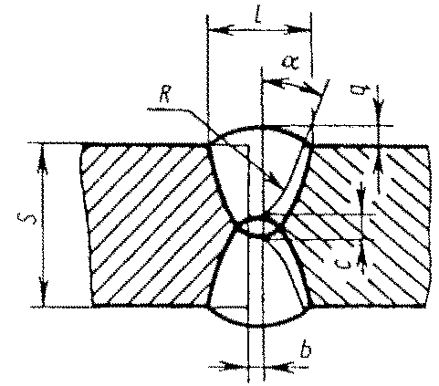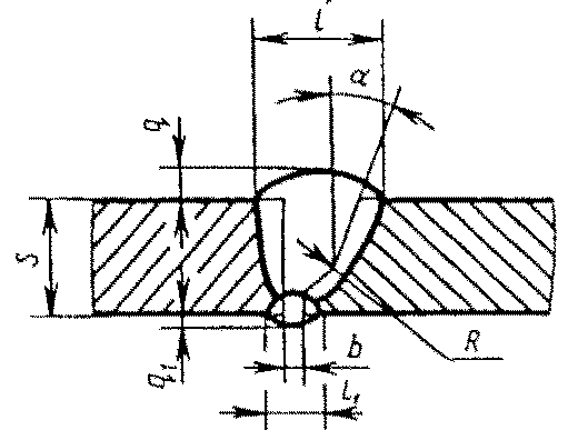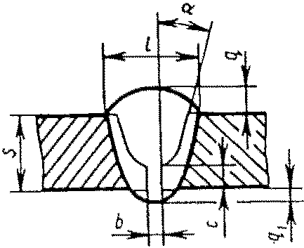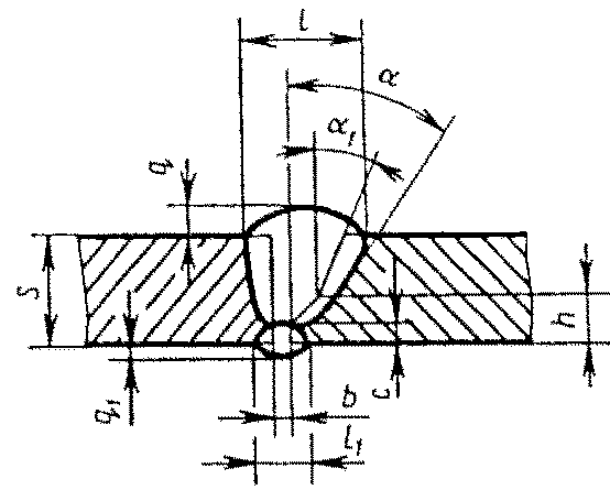 С13 | Стыковых соединений с криволинейным скосом одной кромки двусторонние | ![]() | - основной шовF = 0,75 l1 q1 - подварочный шов | |