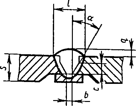 С4 | Стыковых соединений без скоса односторонние на съемной подкладке | ![]() | F = S · b + 0,75 l q | |
