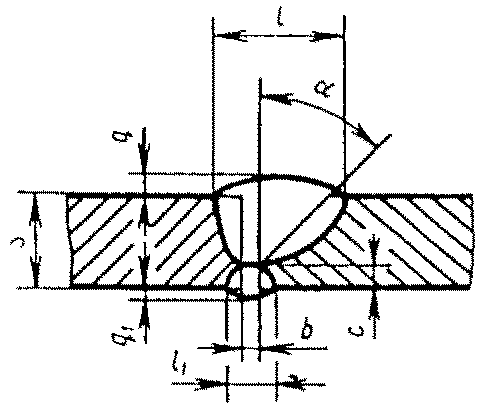 С14 | Стыковых соединений с ломаным скосом одной кромки двусторонние | ![]() | - основной шовF = 0,75 l1 q1 - с противоположной стороны | |
