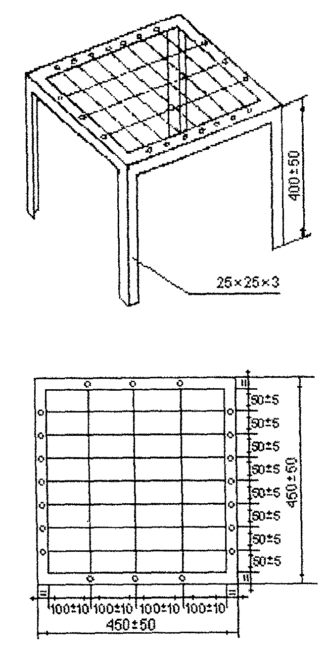 , размерами (450 +/- 50) х (450 +/- 50) мм.