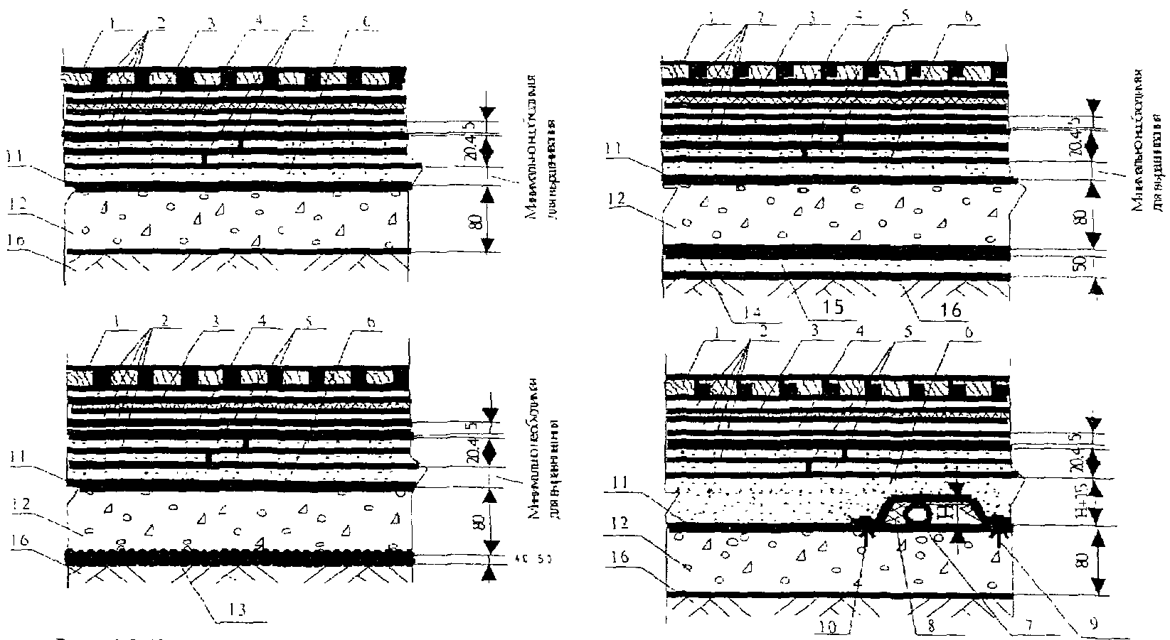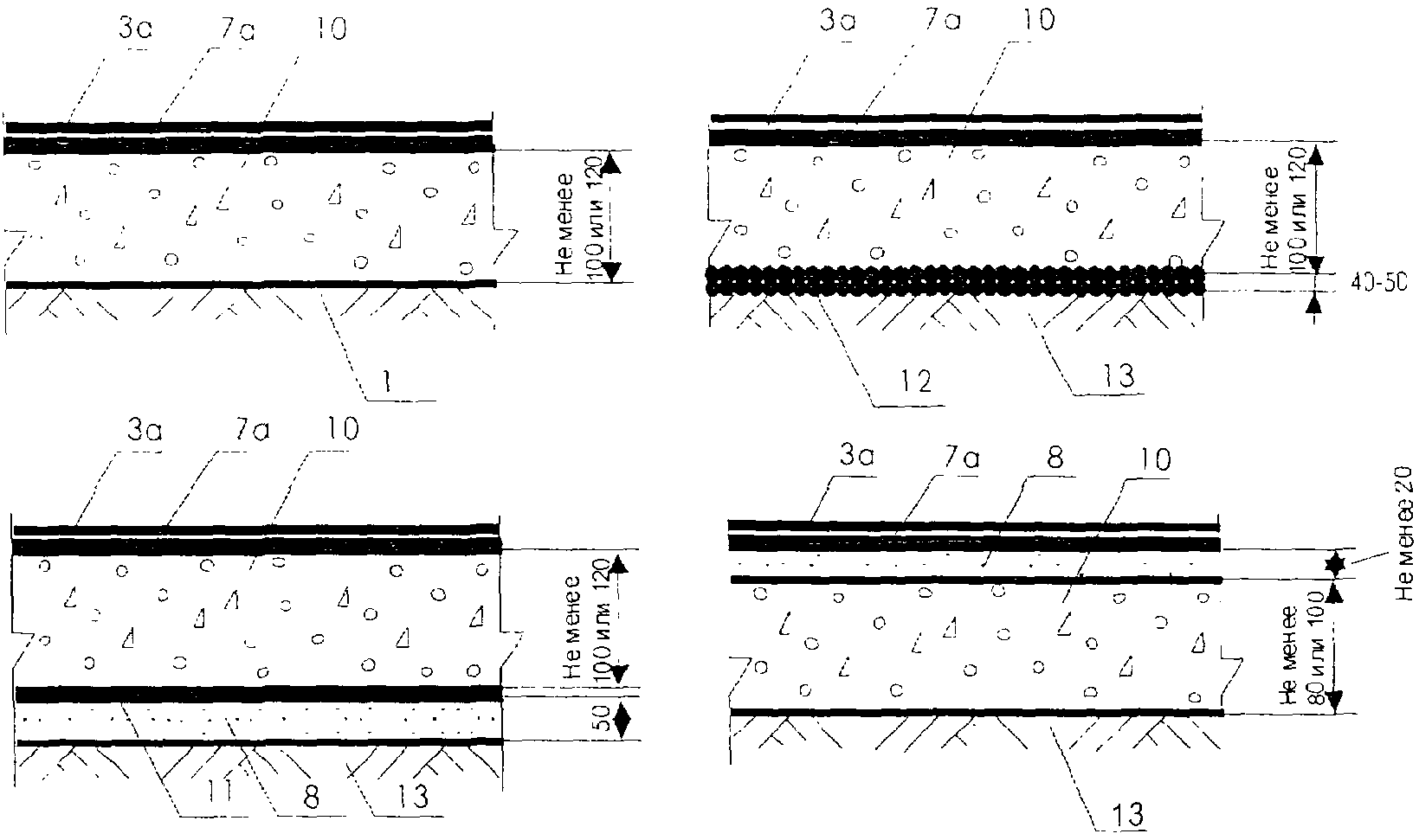 Движение транспорта на резиновом ходу на одну полосу движения, ед./сут | Более 200 | 100 - 200 | Менее 100 | Движение ручных тележек |