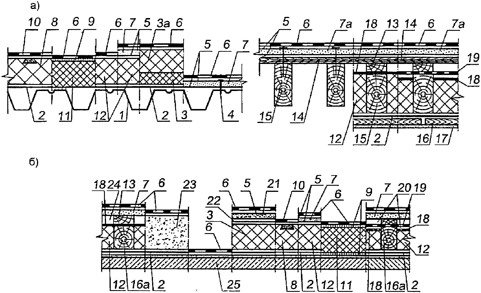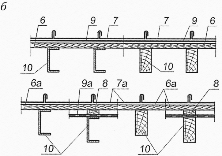 деревянный настил; 6а - обрешетка; 6б - сплошной деревянный