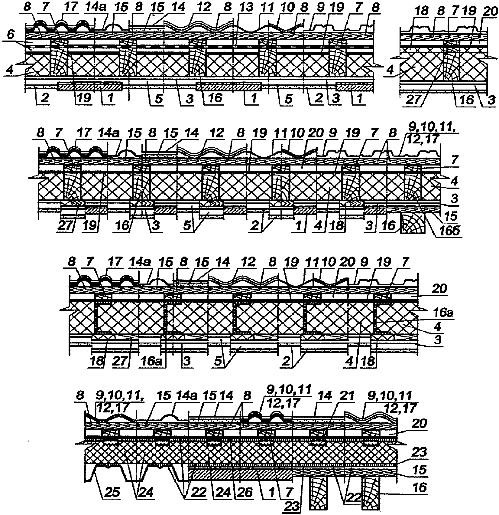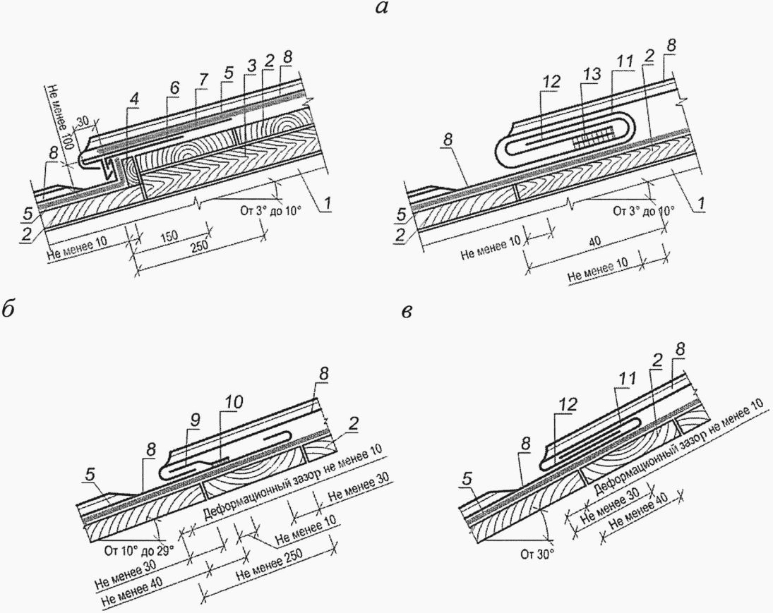Рисунок И.1 - Конструктивные решения кровель утепленной (а)