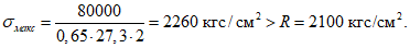 где N - расчетное усилие; Rсрз = 1,6 кгс/см2 для раствора марки 50 и выше и 1,1 кгс/см2 для раствора марки 25.