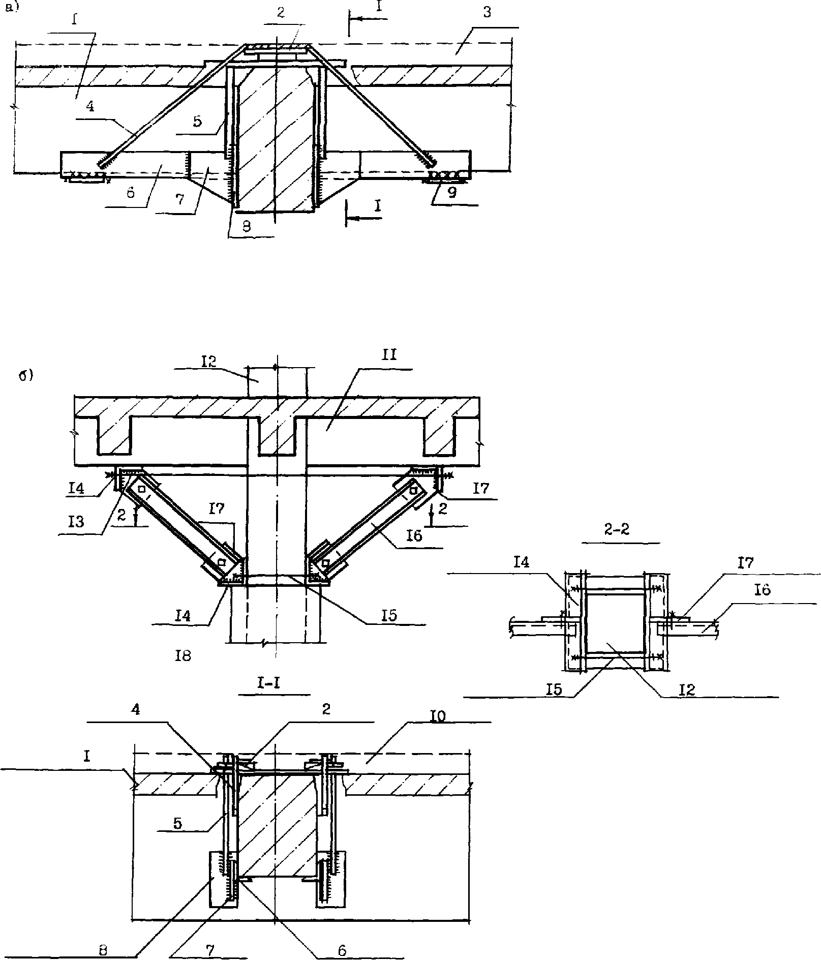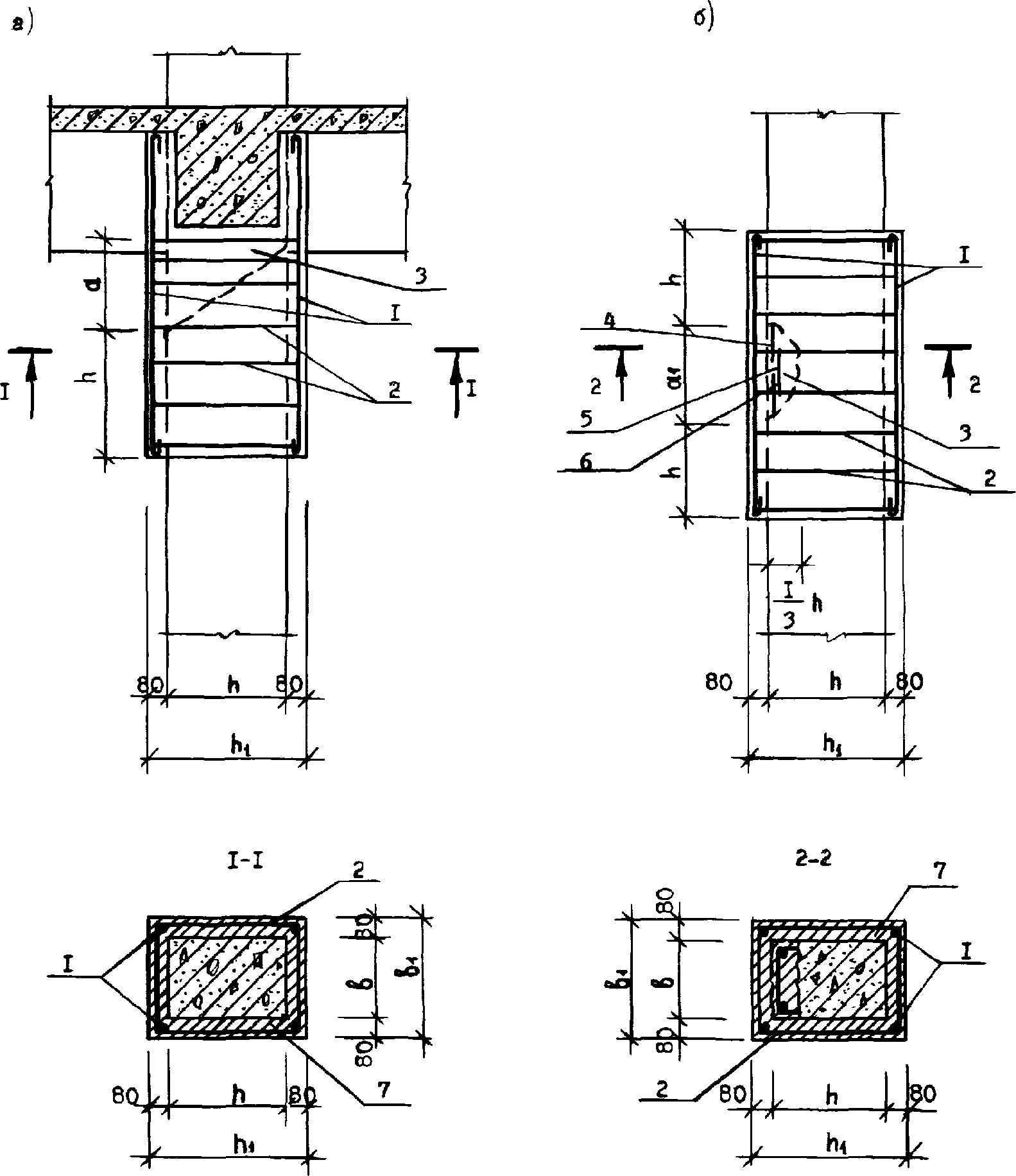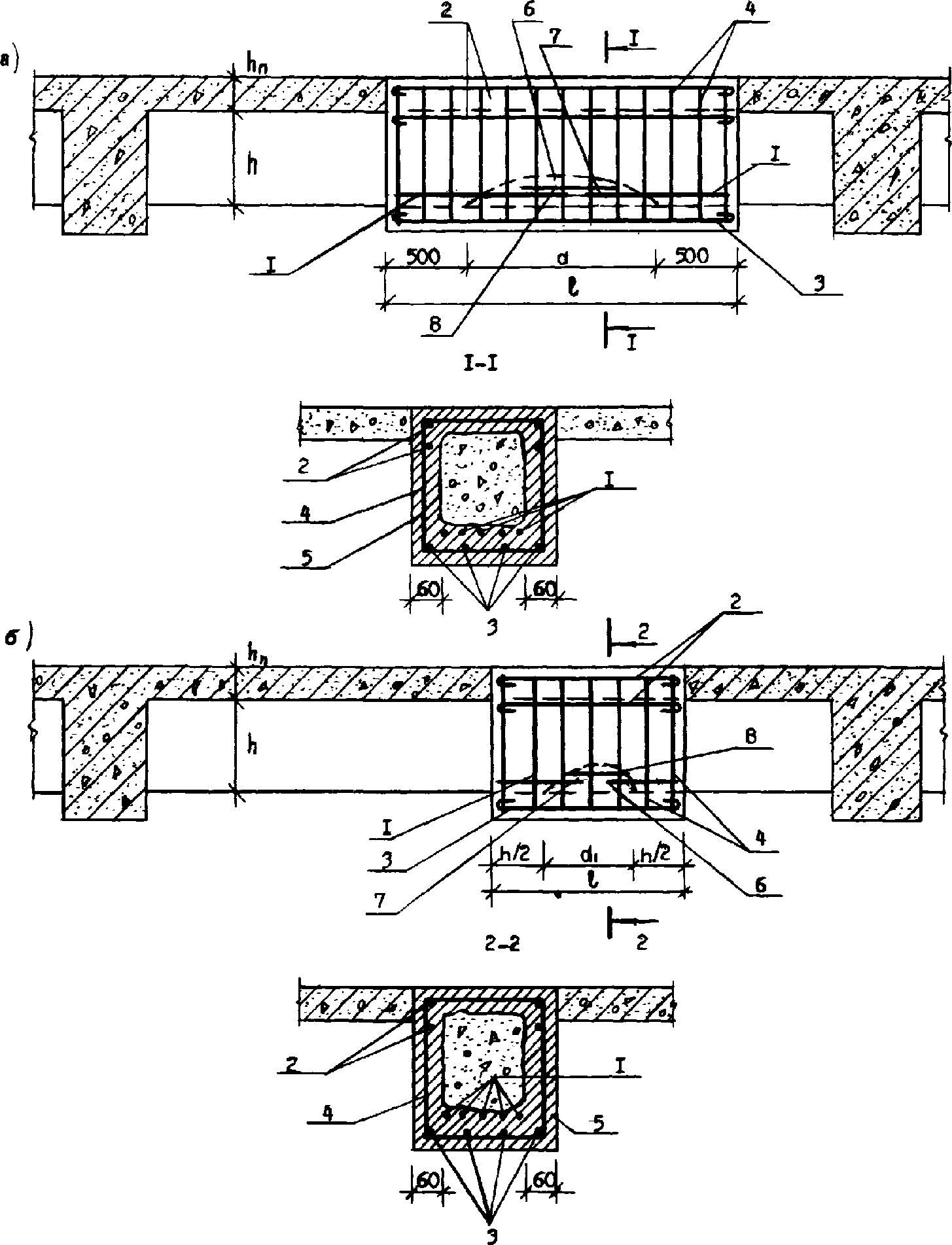Около опорных частей железобетонных обойм хомуты устанавливаются с шагом, уменьшенным вдвое. Стальные обоймы должны иметь опорные башмаки из уголков и швеллеров, подчеканиваемые жестким раствором.