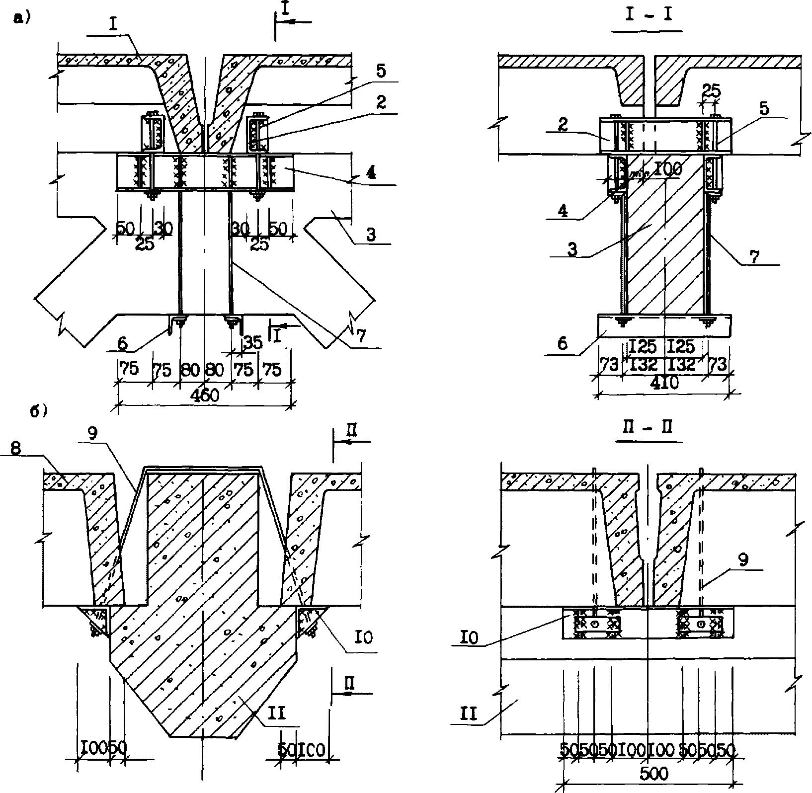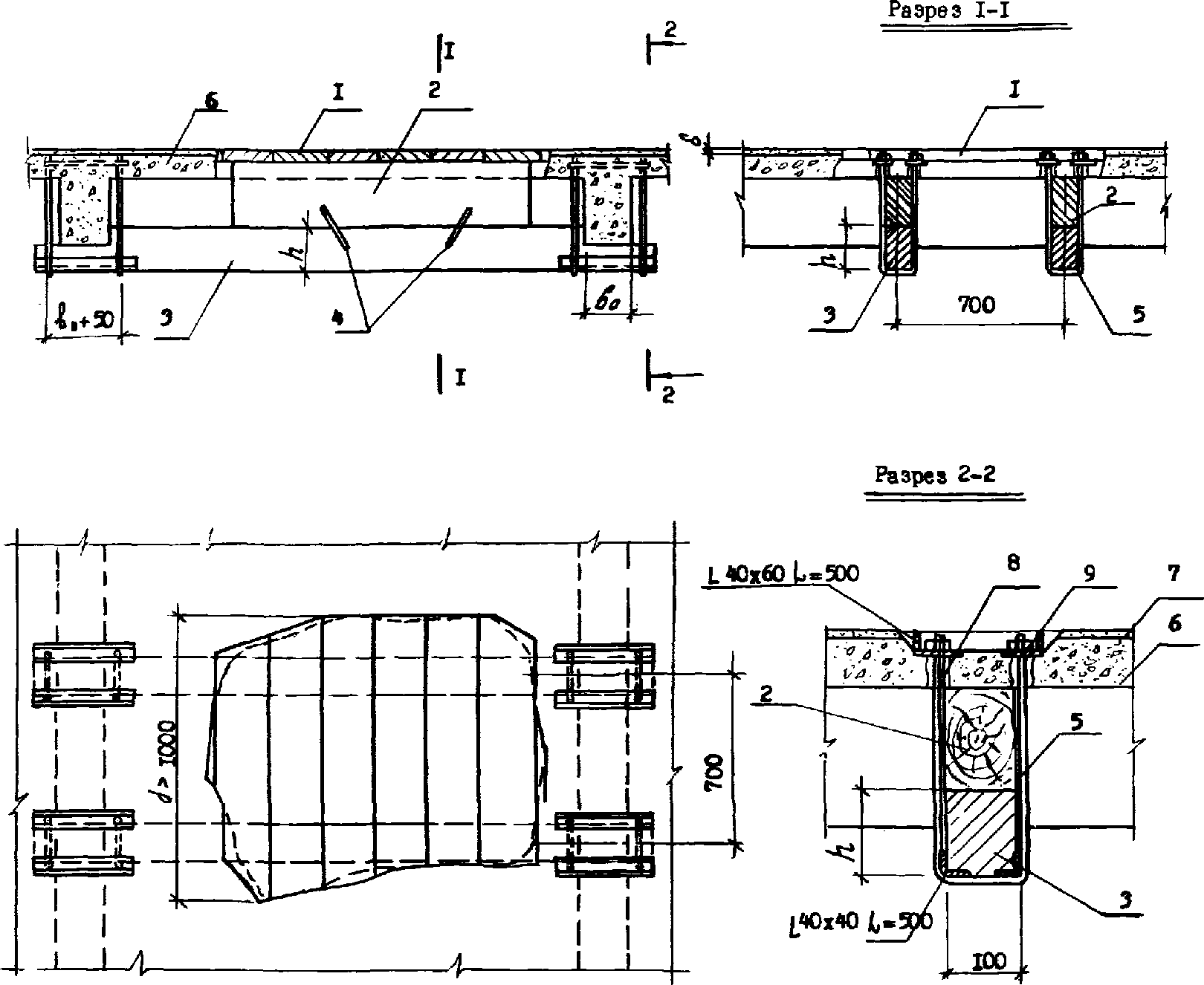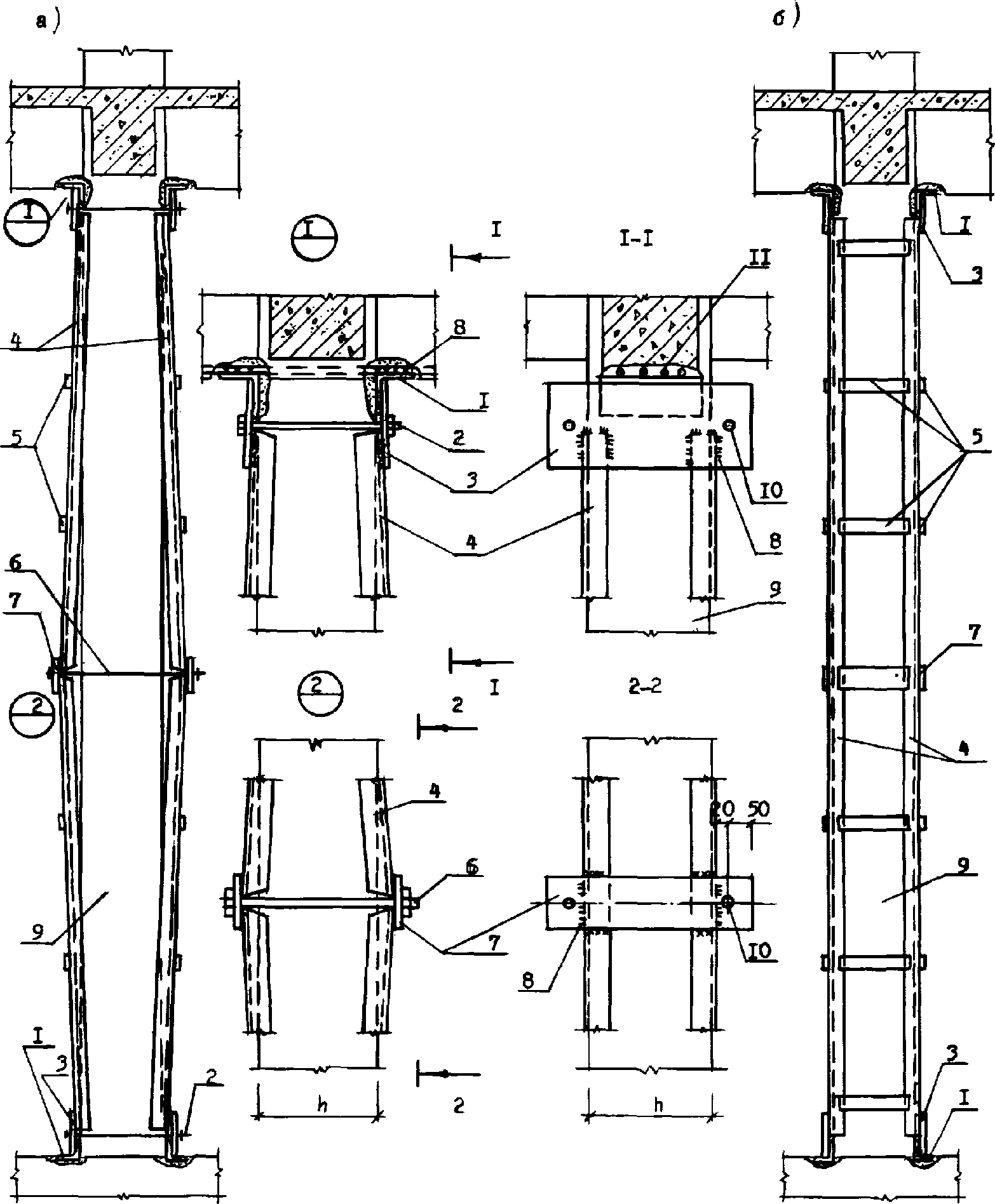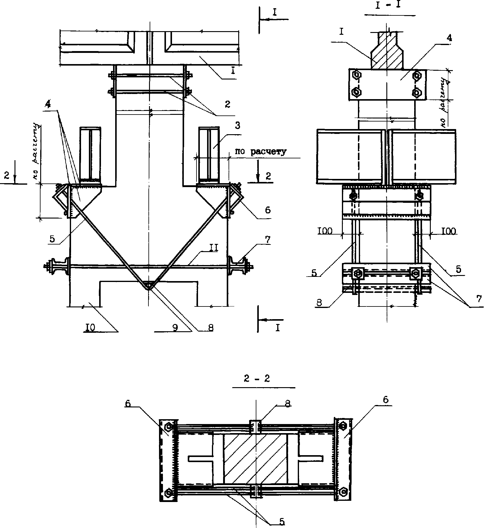 Около опорных частей железобетонных обойм хомуты устанавливаются с шагом, уменьшенным вдвое. Стальные обоймы должны иметь опорные башмаки из уголков и швеллеров, подчеканиваемые жестким раствором.