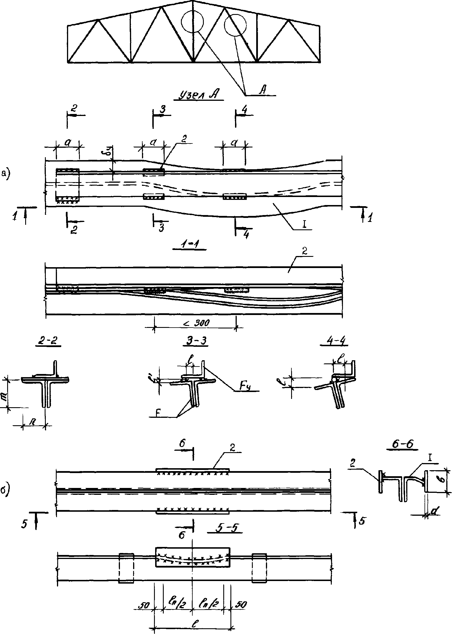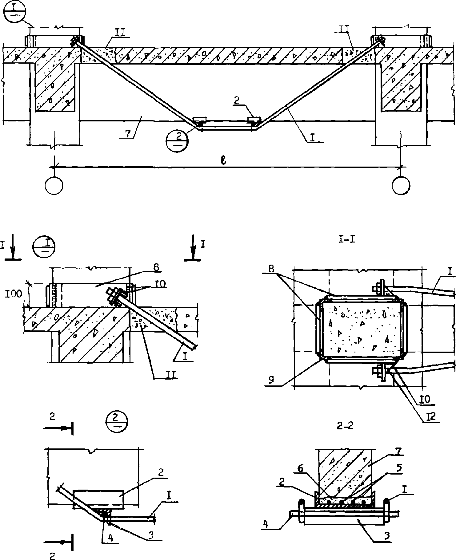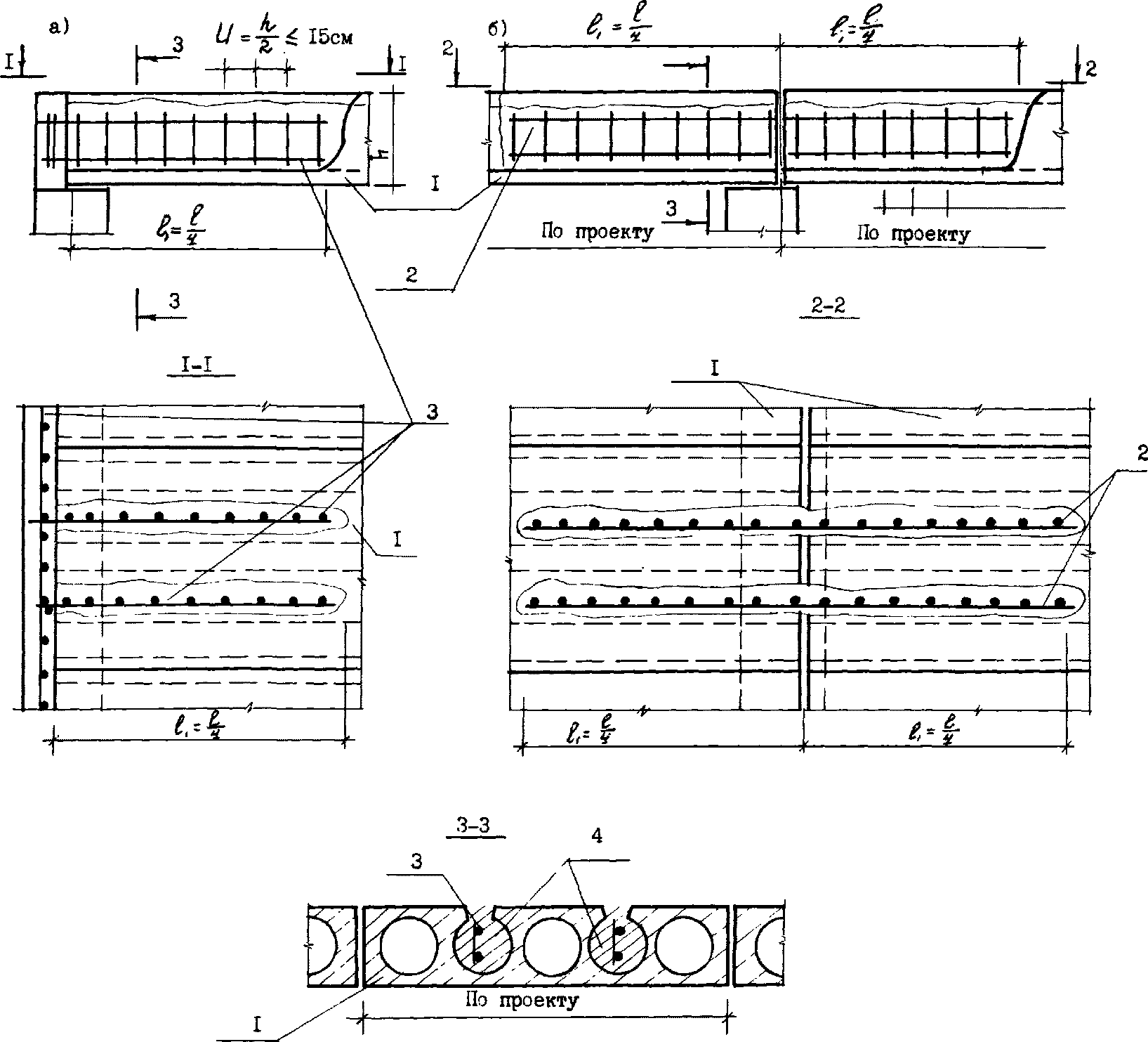 Элементы усилений, являющиеся для усиливаемой конструкции разгружающими системами и с нею не замоноличиваемые, рассчитываются как самостоятельные или составные системы. При этом усилия в старой (усиливаемой) и новой (усиливающей) частях конструкции определяются по правилам строительной механики.
