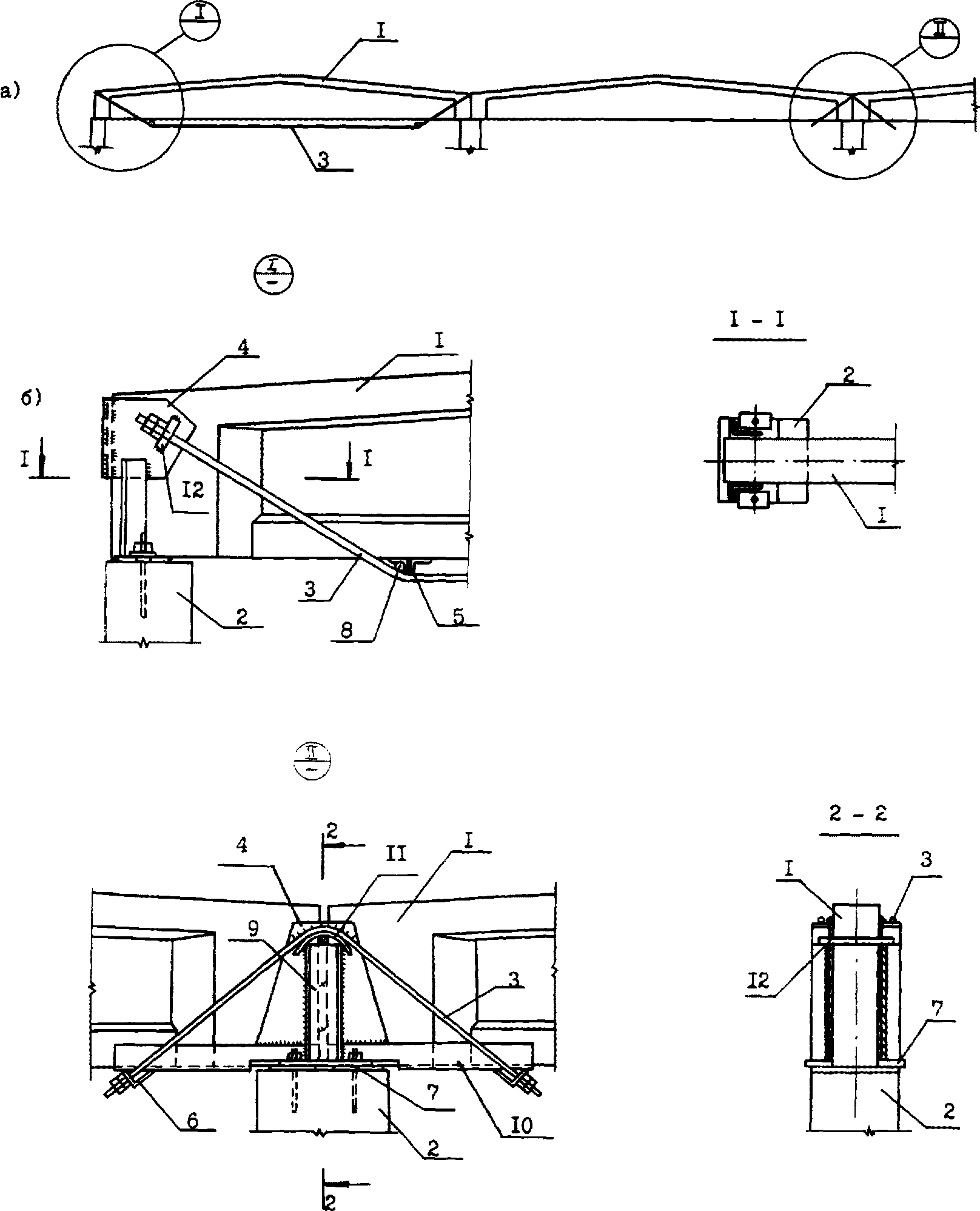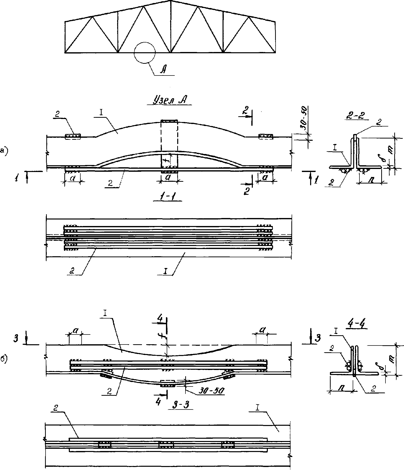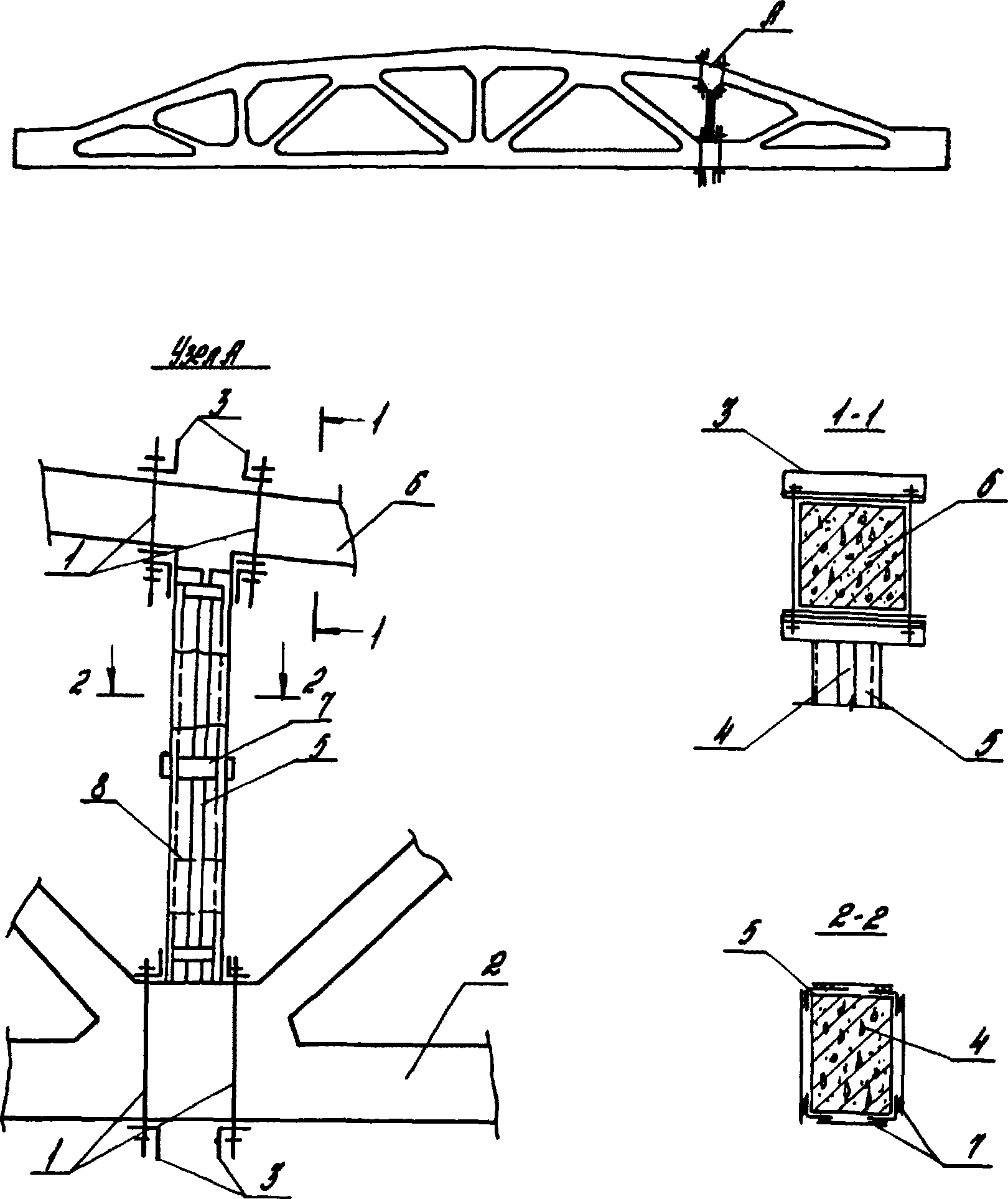 Элементы усилений, являющиеся для усиливаемой конструкции разгружающими системами и с нею не замоноличиваемые, рассчитываются как самостоятельные или составные системы. При этом усилия в старой (усиливаемой) и новой (усиливающей) частях конструкции определяются по правилам строительной механики.