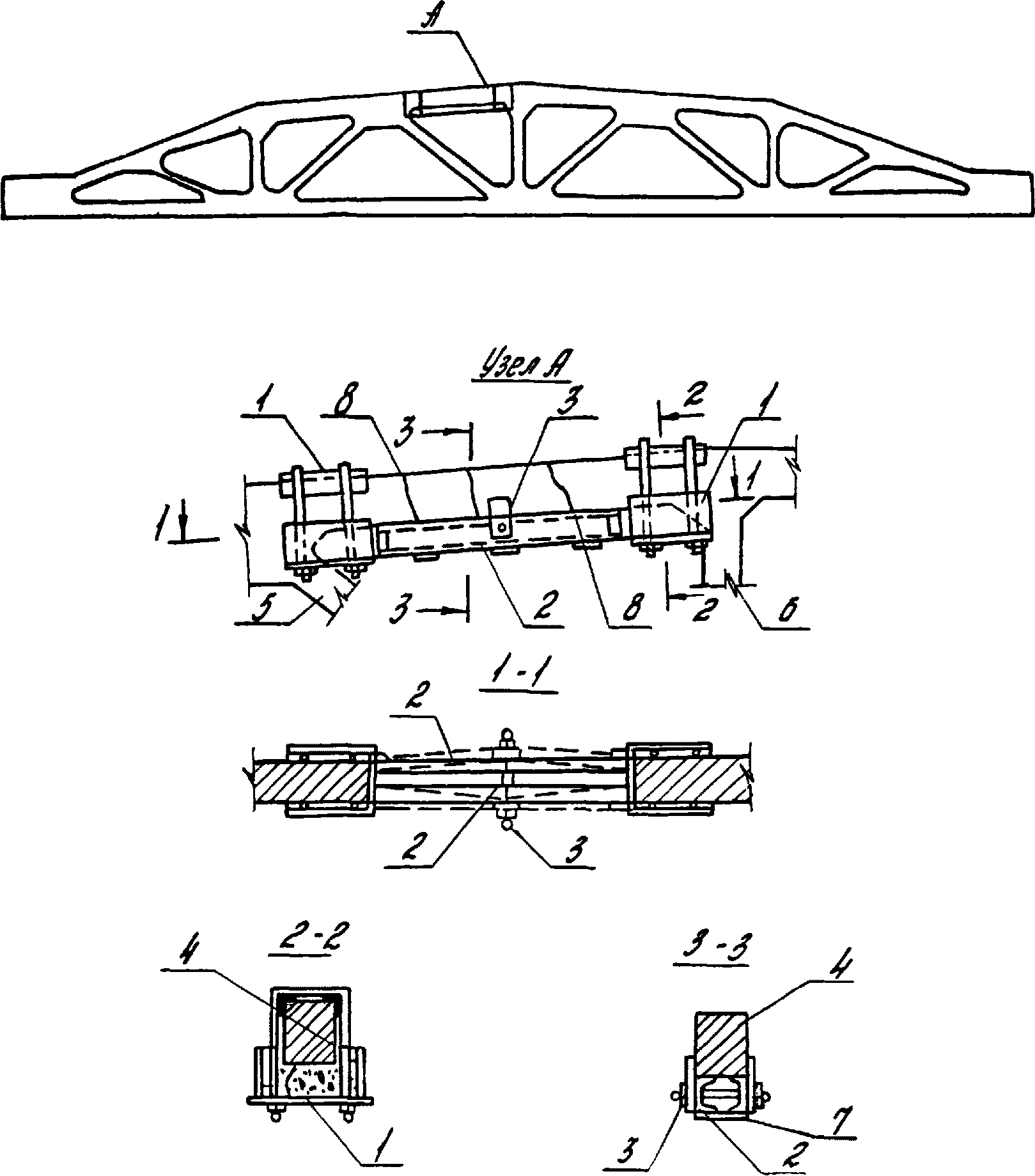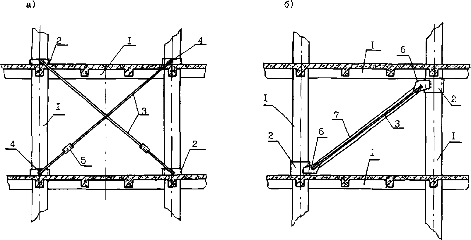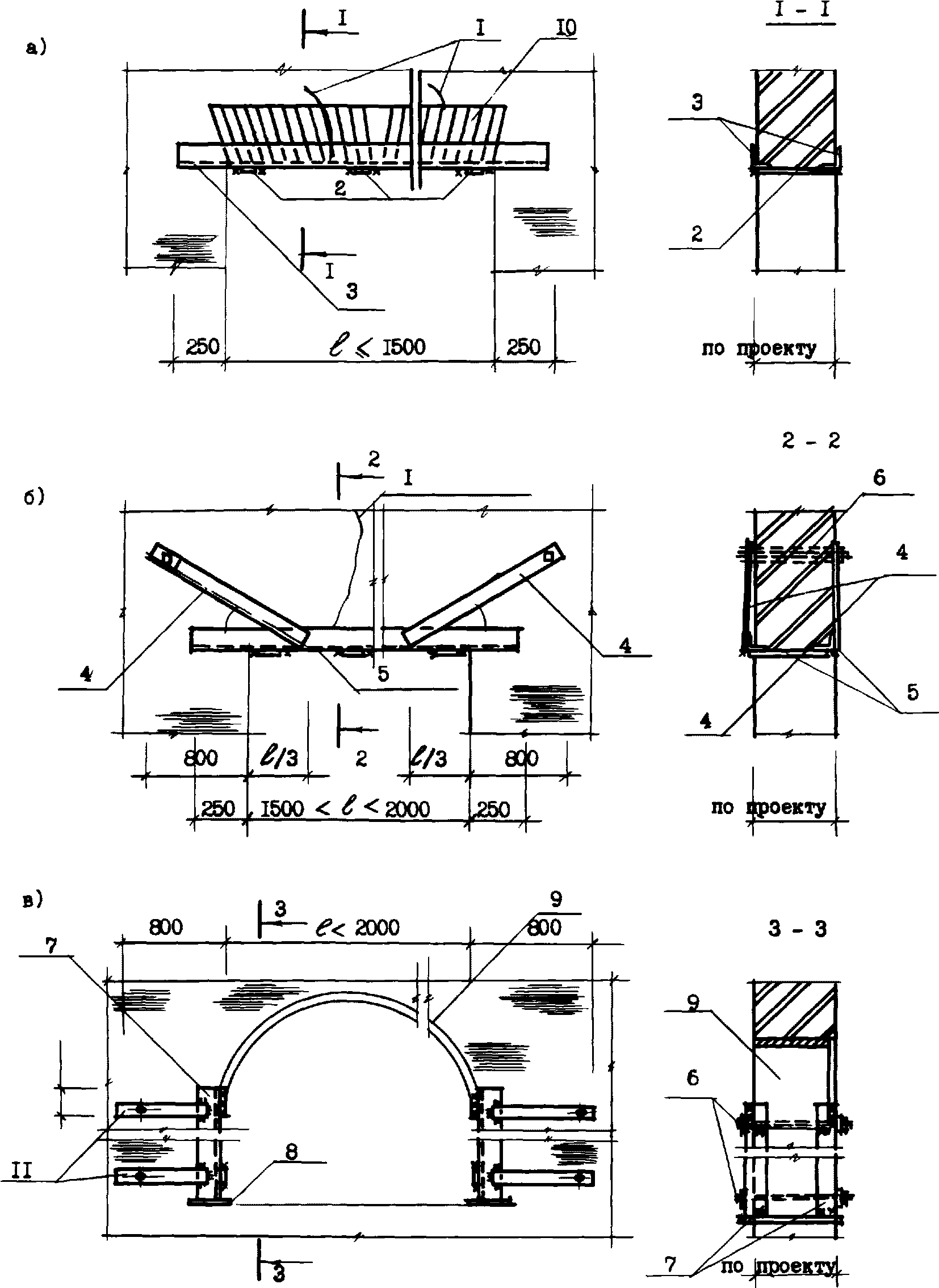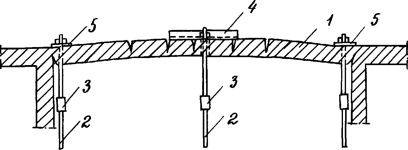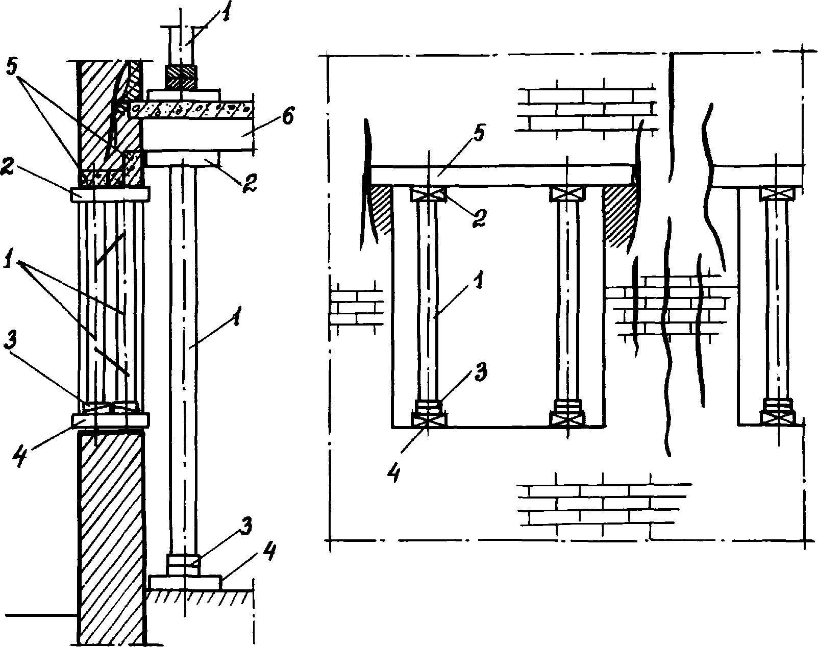 Элементы разгружающих систем усилений должны быть после установки надежно включены в работу, т.е. между ними и усиливаемой конструкцией должны быть введены предварительно напряженные связи, распорки, клинья, стяжки, подбетонки или другие устройства, создающие предварительное напряжение в конструкции усиления.