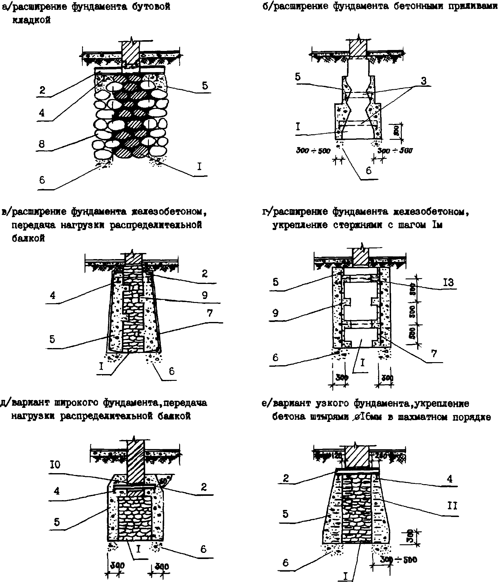 В зависимости от сочетания причин усиления, а также типа конструкций, характера и степени их повреждения рекомендуются определенные способы усиления.